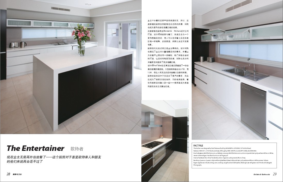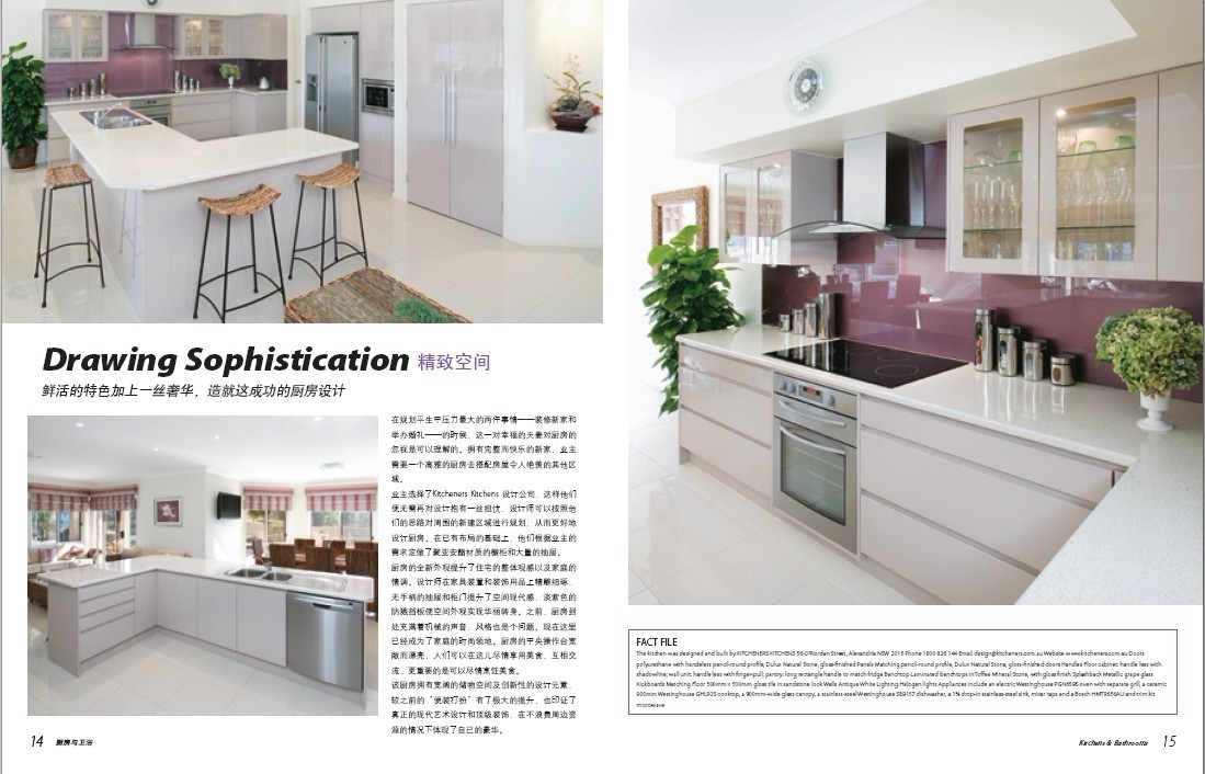 本刊英文版Kitchens & Bathrooms由澳大利亚最专业的出版集团之一Universal Magazines出版发行。多年来,Kitchens & Bathrooms向全球数以万计的读者诠释了厨卫产品最新设计理念及尖端产品信息,并始终以敏锐的洞察力及精准的市场定位稳居澳洲同类杂志畅销榜首位,同时也是欧美久负盛名的厨卫专业杂志。2012年起,凤凰出版传媒集团全版权引进《厨房与卫浴》杂志,与Universal Magazines强强联合,打造适合中国的高端厨卫杂志。我们“空间纳天地之圆方,凤凰集建筑之所长”,藉由本社建筑行业背景,《厨房与卫浴》(中文版)必将成为中国室内设计、厨房卫浴及其相关行业的权威杂志。