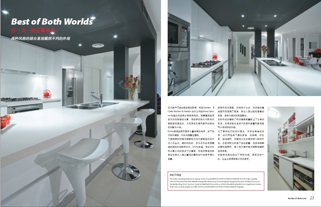 《厨房与卫浴》(Kitchens & Bathrooms)是中国首本高端时尚厨卫杂志。我们携手住房工业协会(HIA)、国际室内设计师及建筑师联盟(IFI)、国际工业设计师联合会(ICSID)等多家极具影响力的专业机构深度合作,向全球读者展示国际先进的厨卫设计理念、顶级室内设计作品及前沿产品信息。杂志着眼于产品设计、空间布局合理化、灯光营造、材料应用等方面,用极具视觉冲击力的照片,诠释最新经典案例。我们秉持“设计生活,审美至上”的原则,坚持专业视角,提供最新国际设计,让设计美好生活.