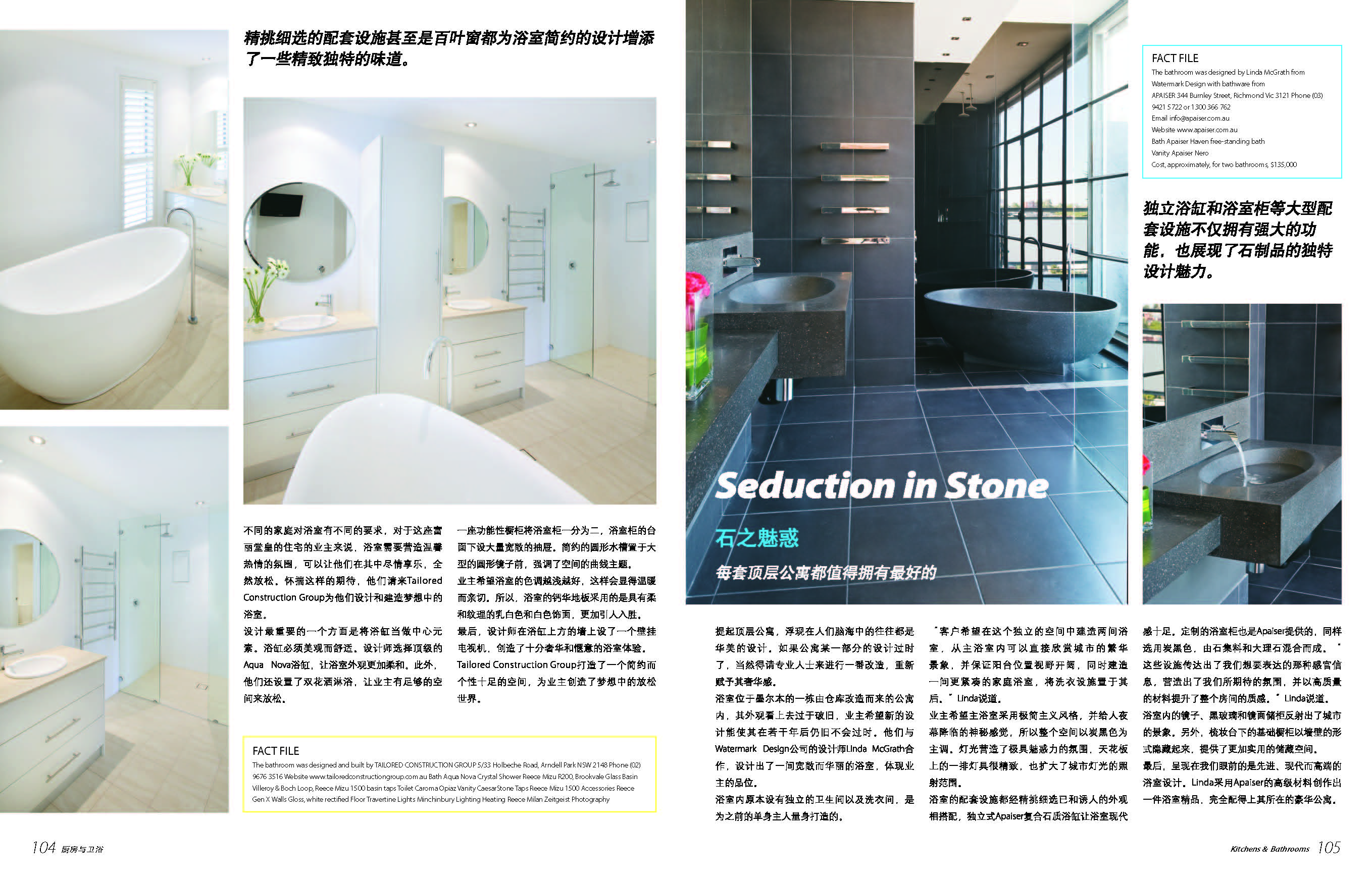 项目选自国际最新的厨房与卫浴的室内设计案例,原版《Kitchens & Bathrooms》是澳大利亚厨房与卫浴室内设计领域的畅销杂志。