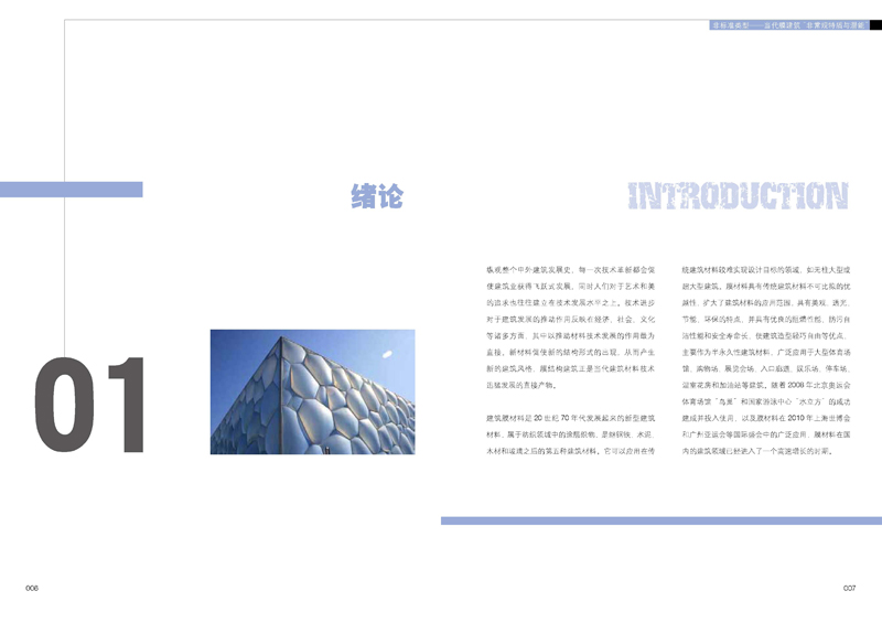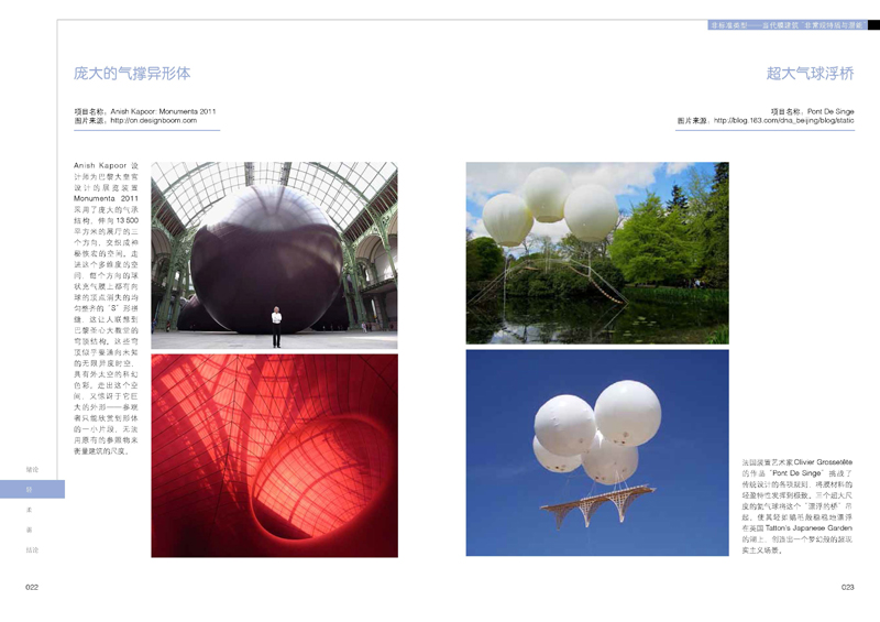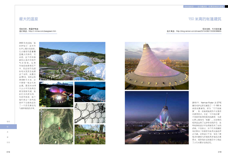 本书通过对国际优秀膜材料建筑案例进行分类、归纳、总结,用三个章节系统全面地讲述了膜材料的特质:轻、柔、弱,以及由此特质带来的各种可能性。根据这些作品的精炼而独到的简要分析,使膜材料从建筑领域跨越到其他领域,不断地革新、发展、飞跃,以此展望未来膜材料的建筑表现潜力。