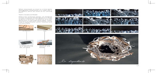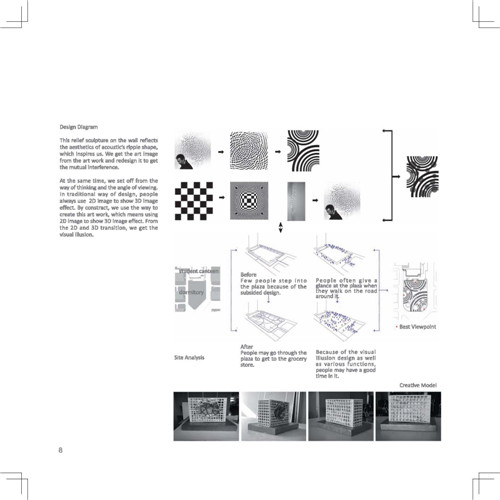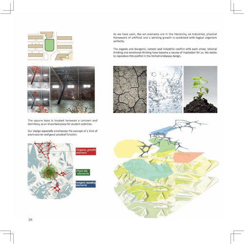 本书内容主要分为两大部分,第一部分中玛莎施瓦茨与天津大学建筑学院风景园林系的联合设计以艺术为切入点,超越风格和形式语言的借鉴,训练一种开放式的,但又不失逻辑性的设计思维方式。而本书后半部分,内容上将第一部分所选取的艺术作品进行转译,最终形成景观设计方案。所要表述的概念必须通过作品的材料、特性、组合等能被观者直接感受到的东西来传达,让学生放弃惯用的从功能、流线和行为分析来切入设计的方式,而从一件与基地完全不相关的,但能打动内心的一件艺术品出发来开启设计。