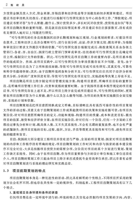 1.3 项目前期策划的特点