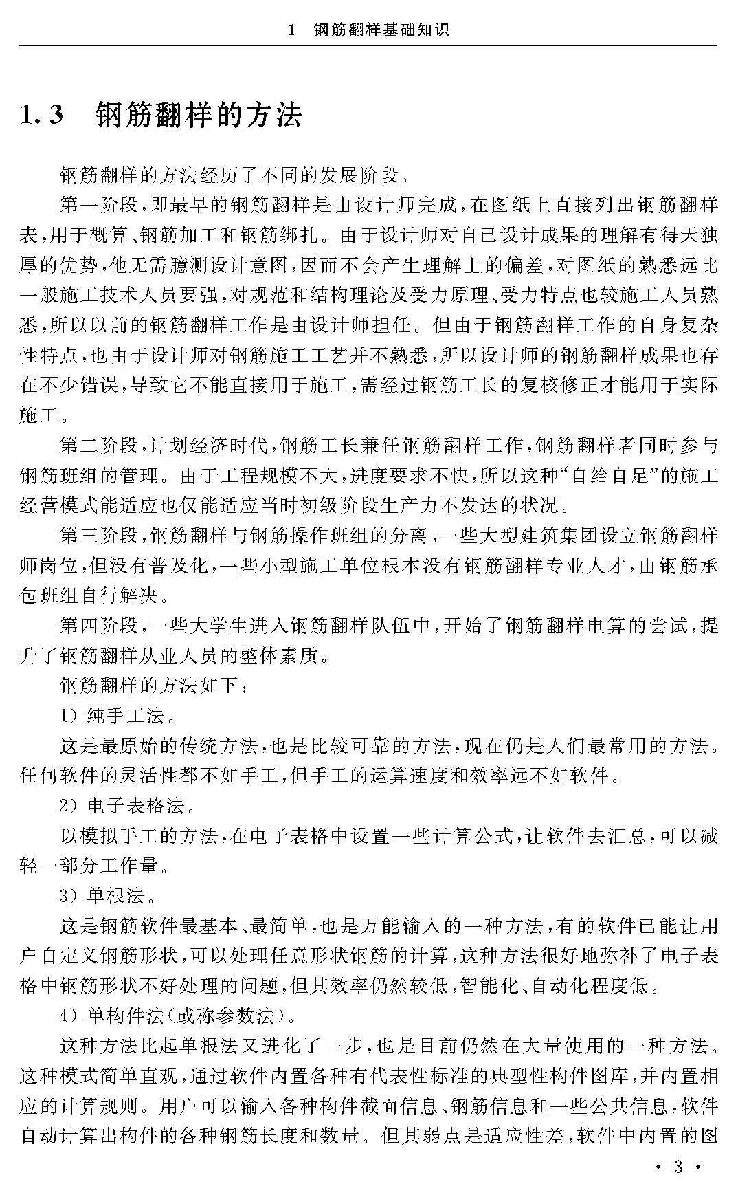 初步设计阶段,钢筋翻样人员可以利用自己的专业优势和丰富经验参与结构体系方案的优化论证;在施工图设计阶段也可以进行优化设计,用什么样的结构方案能多快好省,既能保证结构的安全又能节约造价;在图纸会审阶段,钢筋翻样人员可以发挥更大的作用,在图纸会审时能发现和纠正图纸的缺陷、遗漏、矛盾、错误和不合理处,避免在施工时返工、修改;在施工阶段,优秀的钢筋翻样人员及时提供正确的钢筋用量计划表和钢筋下料单,不因工程的复杂多样性和工期紧迫性而影响施工进度。如同翻译讲究信、达、雅,钢筋翻样也如此。