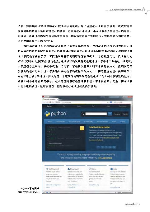 《学习PYTHON—做个有编程能力的设计师》从编程设计角度阐述利用Python脚本语言辅助设计的方法。在广大设计师从来没有想过设计行业与编程会发生关联时,编程设计已经对传统设计方法产生了影响,甚至变革。编程语言通过图形程序与设计构建了最为直接的联系,使得设计的过程更加智能化,利用语言的魔力实现更复杂设计形式的创造和解决各类设计以及分析的问题。