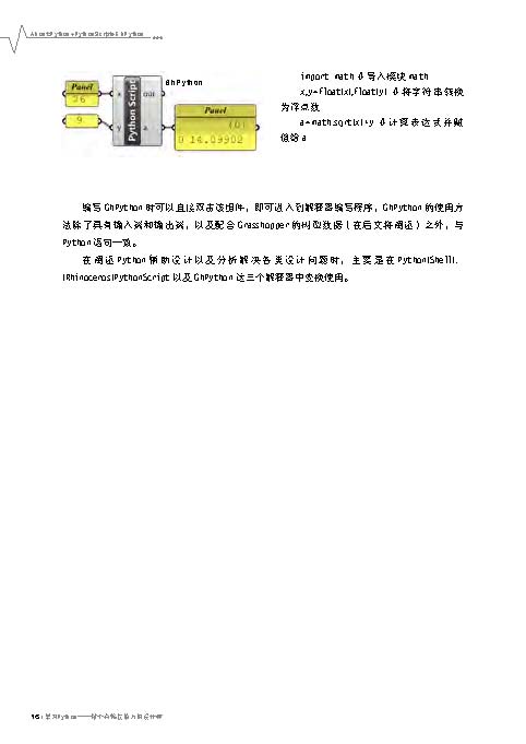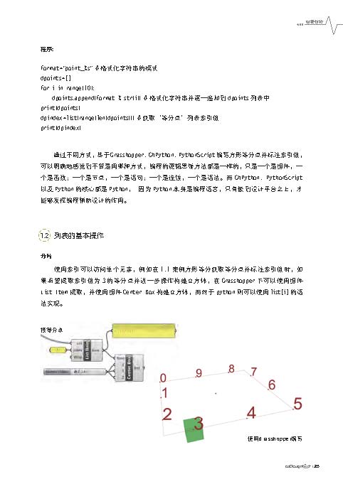 《学习PYTHON—做个有编程能力的设计师》不是纯粹的Python编程学习,而是在学习基本Python编程语言时阐述辅助设计的方法,从Python Shell到RH_Python再到GH_Python,将Python真正作为设计者从事设计辅助的编程语言;同时这又不是纯粹几何形式编程的说明,而是包括Python编程数据结构、基本语句、函数与类的学习过程。