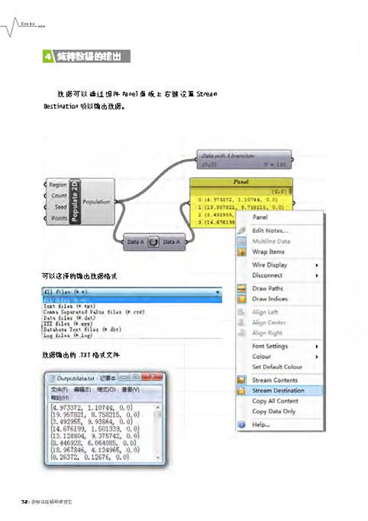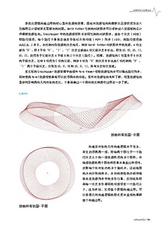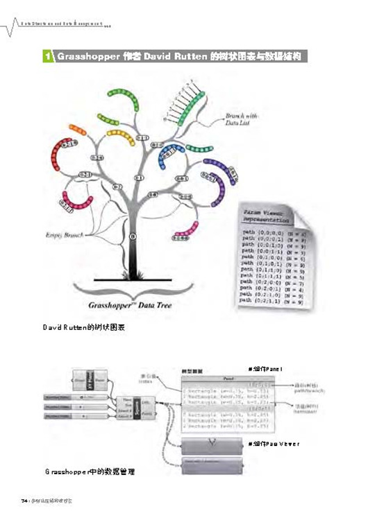 “数据结构与数据管理”部分是Grasshopper程序编写的核心技术,如果需要更加智能化的辅助甚至主导设计,需要熟知数据的组织方式和管理方法。本部分详细阐述了List列表与Tree树型数据的数据结构,并将对核心技术的应用方法贯穿于整本书的始终。同时讲述了外部数据,例如高程数据调入的方法;