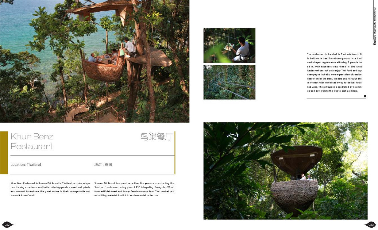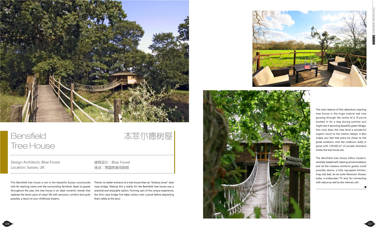 树屋在国外是很多父母为自己的孩子建造的一个童年时期可以住和玩的屋子,但是在国内,很少有家庭有这个条件和想法,而本书就为读者提供了一个个独具创意的树屋设计;从商业应用、居住设计、游乐观光和未来设计,按照不同的功能划分,全面的介绍了树屋的整个设计工程和创意思维。希望其中必有你喜欢和需要的,或者从中可以带来更多的设计灵感。而本书的亮点在于:
