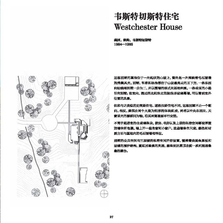 理查德·迈耶丛书共计六卷,收录了理查德·迈耶以及迈耶工作室近50年来的全部设计作品。迈耶设计的产品都颇为简练,既包括居家设计也包括商用设计。他设计的作品最大的特点是永远有自己的特性而不是在风格上受别人的影响而迷惑。由于其大胆的风格和值得称颂的忠诚,迈耶创造出颇为独特的粗壮风格。为了在展示方面做得更好,他将斜格、正面以及明暗差别强烈的外形等方面和谐地融合在一起。迈耶的作品以“顺应自然”的理论为基础,表面材料常用白色,以绿色的自然景物衬托,使人觉得清新脱俗,他还善于利用白色表达建筑本身与周围环境的和谐关系。在建筑内部,他运用垂直空间和天然光线在建筑上的反射达到富于光影的效果,他以新的观点解释旧的建筑,并重新组合几何空间。