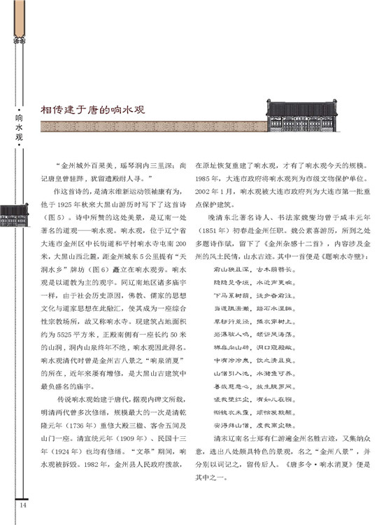 本书将作者七年的测绘成果加以整理、遴选、完善,这些测绘图是大连理工大学建筑学院师生们辛劳和汗水的结晶,是一份珍贵的资料集,展示了响水观整体与局部的结构、造型与细部,尽可能多地保留了响水观测绘的原始数据。本测绘集不仅可为古建筑研究爱好者所用,也可以为从事古建筑修复、保护与传统风格设计的建筑师们提供较为丰富的资料,对我国大连地区历史文化遗产的保护具有深厚意义。