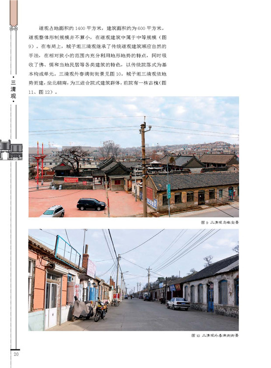 三清观毗邻城子坦镇的春满街。春满街北面有一片海滩,往前不远处就是碧流河汇入黄海的入海口,涨潮时,这里流动的是海水,退潮时就是河水。春满街(图 1)旧称鱼市街,是一条融合着辽南和胶东传统民居特点的老街,至今仍保留着清末民初当地民居的建筑风格与空间布局,是辽宁地区目前保存最为完好,具有鲜明的历史特色、浓郁的文化风情和较高的艺术价值的街区。