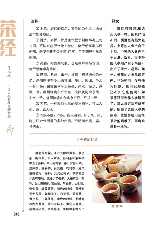 当然,和茶文化相关的古典著作不止有陆羽的《茶经》,在陆羽之后,也出现了不少阐述茶文化的作品。鉴于此,本书收录了宋代蔡襄所写的《茶录》和黄儒写的《品茶要录》,还收录了明代许次纾的《茶疏》。