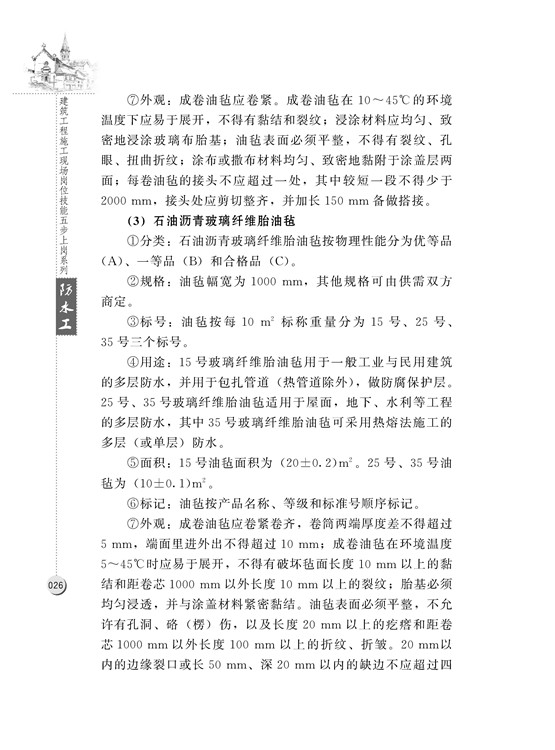 本书将防水工上岗分为五步:第一步——确保上岗资格;第二步——遵守行业规范;第三步——熟悉工具材料;第四步——掌握测量技术;第五步——保障施工安全。