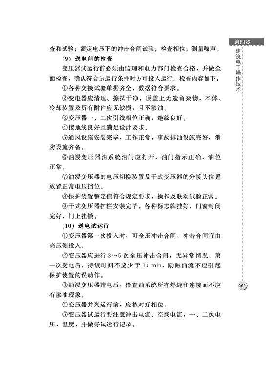 本书将建筑电工上岗分为五步:第一步——确保上岗资格;第二步——遵守行业规范;第三步——熟悉材料工具;第四步——掌握电工基本操作技术;第五步——保障施工安全。