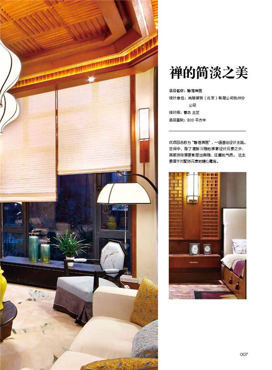今天我们谈室内设计,更确切的讲我们应该是为人们营造一个生存环境或者让环境变得更加宜居。人类的生存是一个的大的自然环境,居家环境是我们小的生存环境,其实大到城市规划、园林景观、建筑结构,小到室内装饰、软装配饰陈设艺术,都应该是整体化的系统工程;室内设计也不应该仅仅停留在室内,也不应该仅仅停留在室内的使用功能和装饰功能层面上,当然使用功能是设计的前提也是设计的初衷,如果仅仅停留在使用功能设计基础上,那么我们的设计就会缺少了生命,所谓一阴一阳谓之道,阳是功能也是形式,而阴却是灵魂,没有了设计的理念和设计灵魂的话,就像一个身体健壮却没有思想的人。装饰也不能仅仅停留在形式的表面上,为了形式而形式,也就失去了形式的意义。那么这种的设计也就更难符合中国的传统文化设计。中式的传统设计也不仅仅是停留在“古建”“少数民族建筑”和“传统建筑”上,当然古建、少数民族建筑和传统的建筑是民族建筑不可缺少的重要组成部分,但中式的设计风格更应该体现中国的传统文化、设计理念以及民族的世界观和价值观,即不能全盘西化走所谓的“国际式”丢掉了传统的设计精髓,也不能全盘复古、仿古;毕竟传统文化代表的是过去,过去的人和事物以及过去的人们的一种生活方式和行为方式,而今天的设计更应该有前瞻性、预见性,来适合当下甚至未来的一种发展;更不应该千城一面。
