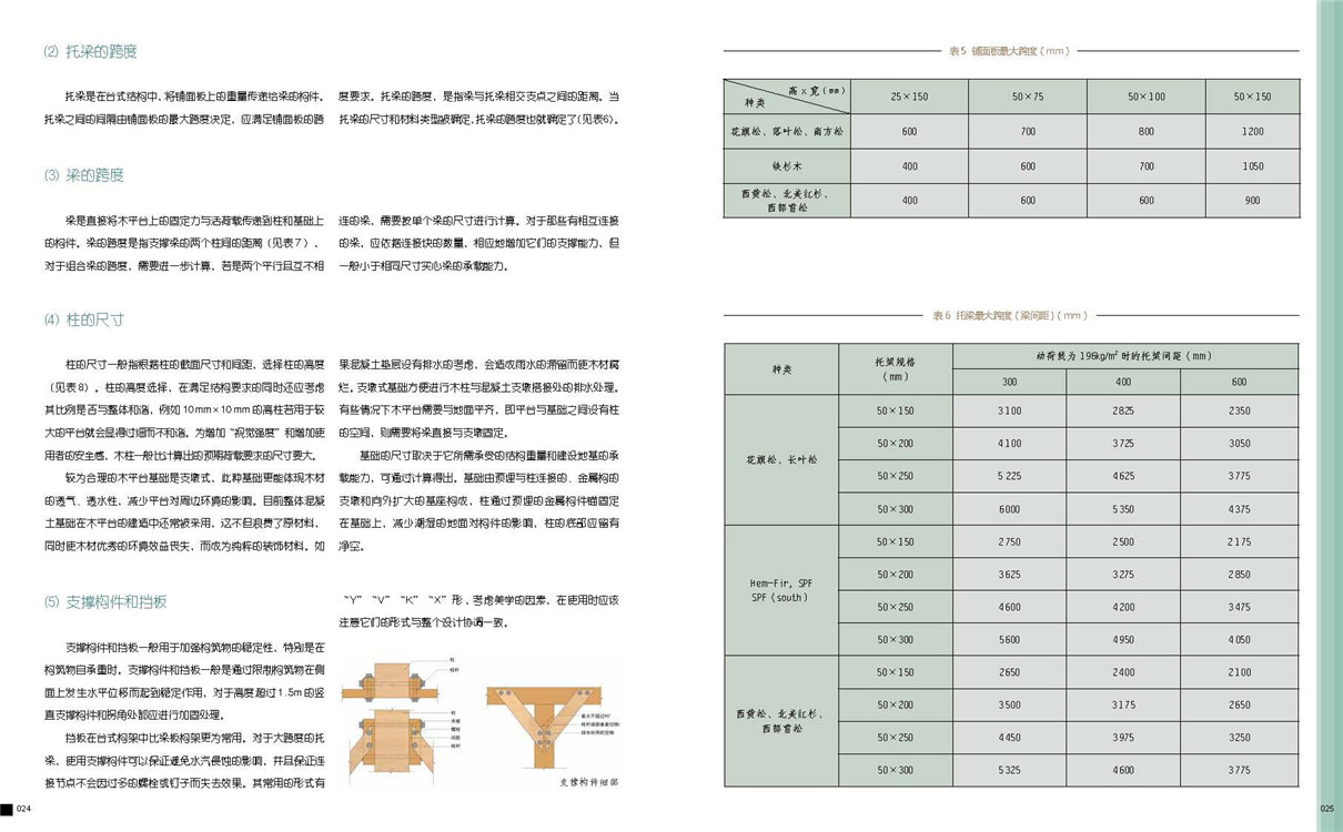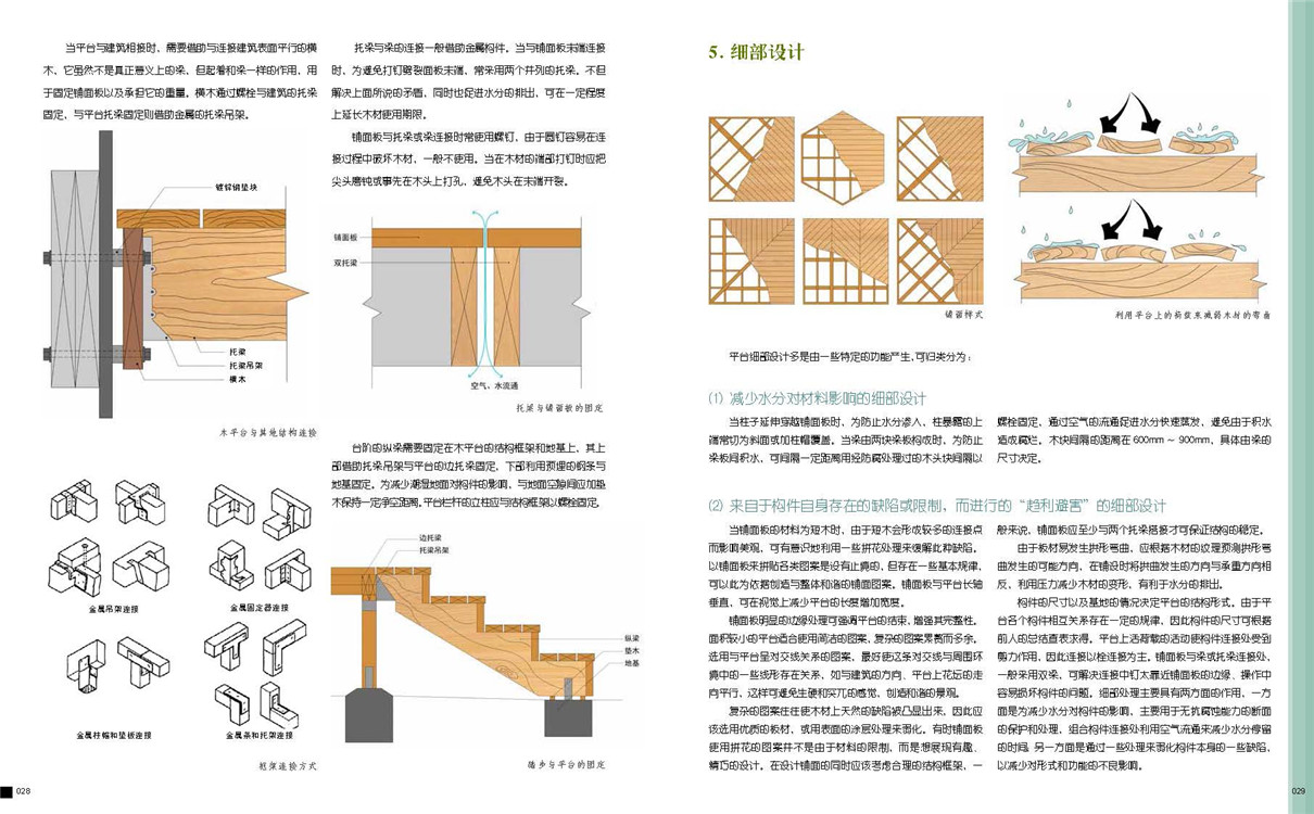 2. 对木质平台、廊架、桥梁、户外家具等景观设施的施工细节解说。