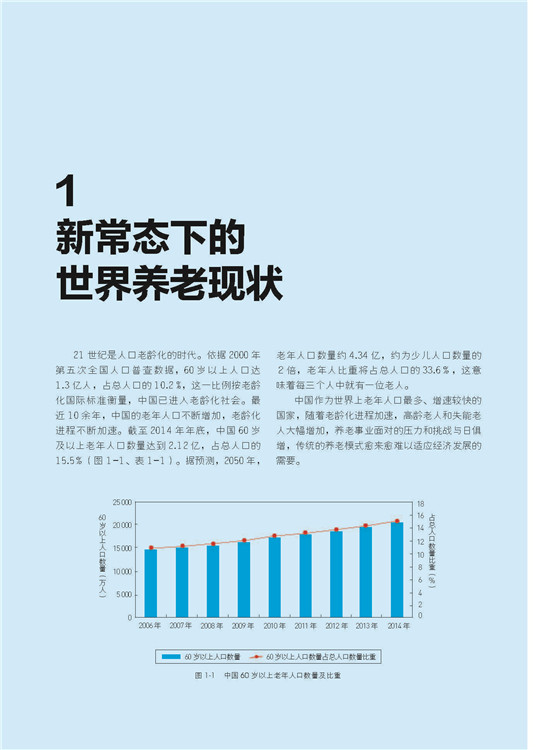 面对全世界老龄化进程的飞速发展,世界各国都在持续关注养老产业的发展,不同国家针对自己的国情和文化习惯采取着不同的应对策略。中国作为一个人口大国,在养老事业发展的初级阶段也正在不断地摸索。经历了郊区大规模新建养老社区的开发模式之后,养老项目的发展正在渐渐回归到老年人原有的生活场所:适老化住宅、老年公寓、社区老年人活动站的兴建,促进了以居家养老为中心的发展。随着现阶段养老需求的急剧上升和社会对养老认识的逐步提高,人们选择的养老地点逐渐回归到老年人原有的居住区附近。养老方式以缩短老年人的养老生活与原有生活之间的差距为首选。所以,本书不仅可以成为参与养老项目的设计人员的参考书,也为各类养老机构的投资者、经营者以及养老服务体系中的服务人员等相关人士在管理和运营方面提供有价值的依据。