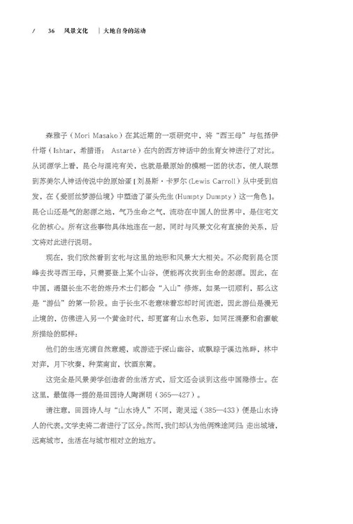 本书所表达的景观是一个文化的、主观的对象,并不简单等同于某一物理环境空间,它存在于凝视着它的民众的视线下。本书内容上主要包括六个部分,分别为历史的浪潮、大地自身的运动、三月三、事眛竟谁辨、质有而趣灵、说破之前的隐晦。著者从词源学、文学、艺术史以及人种学等多学科的角度,尝试阐释“思索景观”与“享乐景观”这两个现象之间的主要矛盾,同时用比较的方法带我们浏览了众多大陆的历史,引发读者对“景观”概念尤其是文化景观更深层的思考。