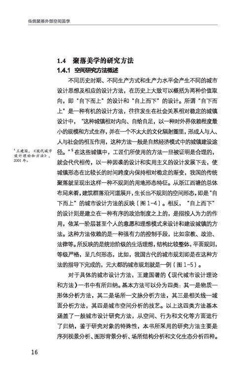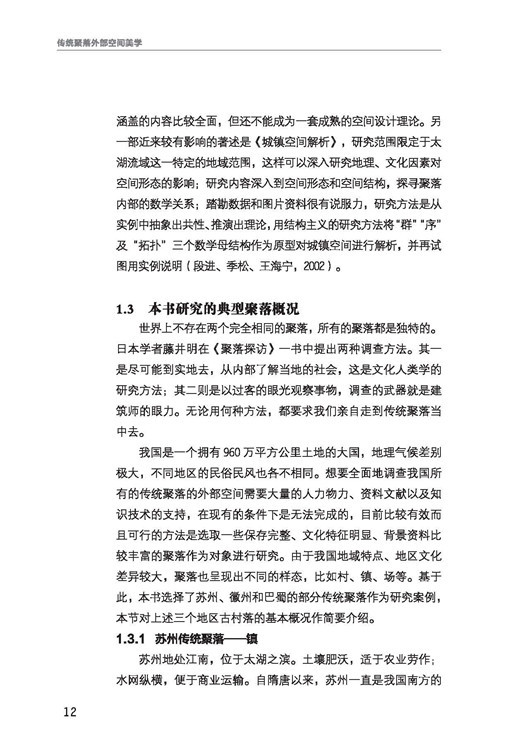 从研究的目标来看,本书重在如何去认识聚落空间,从中获得感悟与启示,用来激发设计的灵感,为原创设计开辟出更为广阔的天空。从研究的方法来看,本书更为在乎实地的考察、发现与感受。怎样发现聚落中的美及如何创造美的问题,也正是这个认知体系使聚落空间研究由零散变得系统,由抽象变得具体,由不可见变得可见。