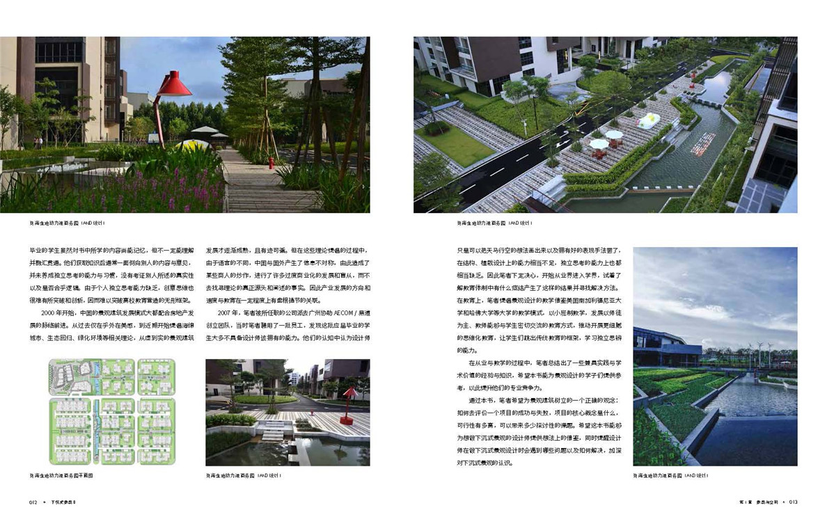 第一章由知名设计师安庾心先生介绍景观设计的历史发展,为景观建筑树立的一个正确的观念:如何去评价一个项目的成功与失败,项目的核心概念是什么,可行性有多高,可以带来多少探讨性的课题。