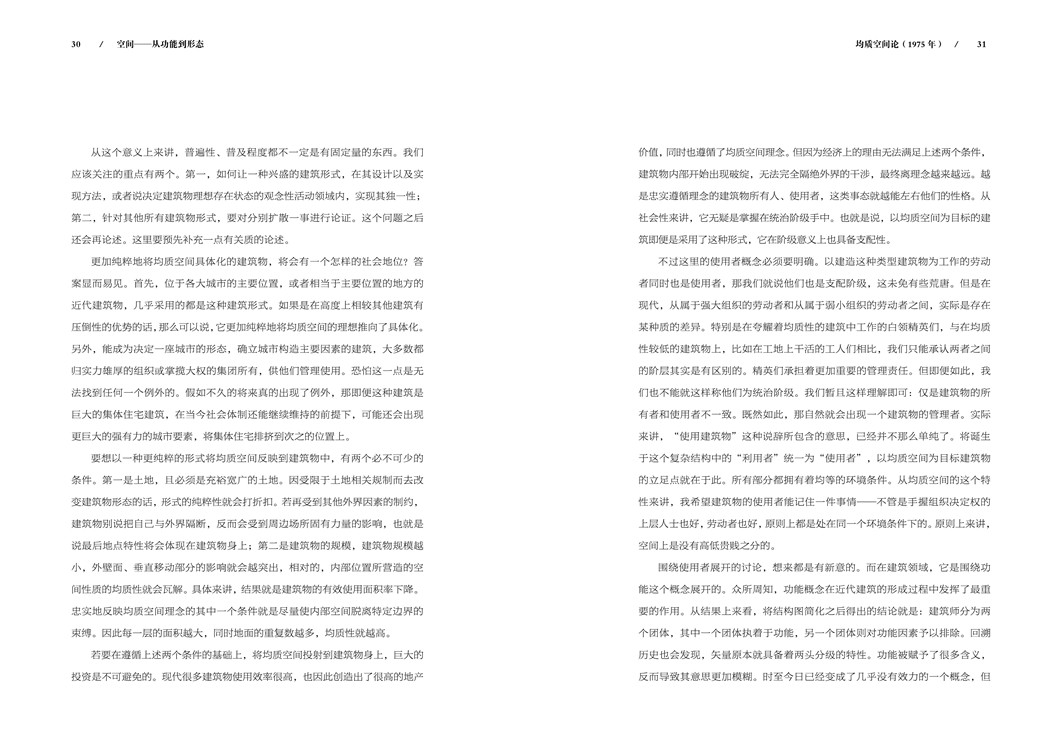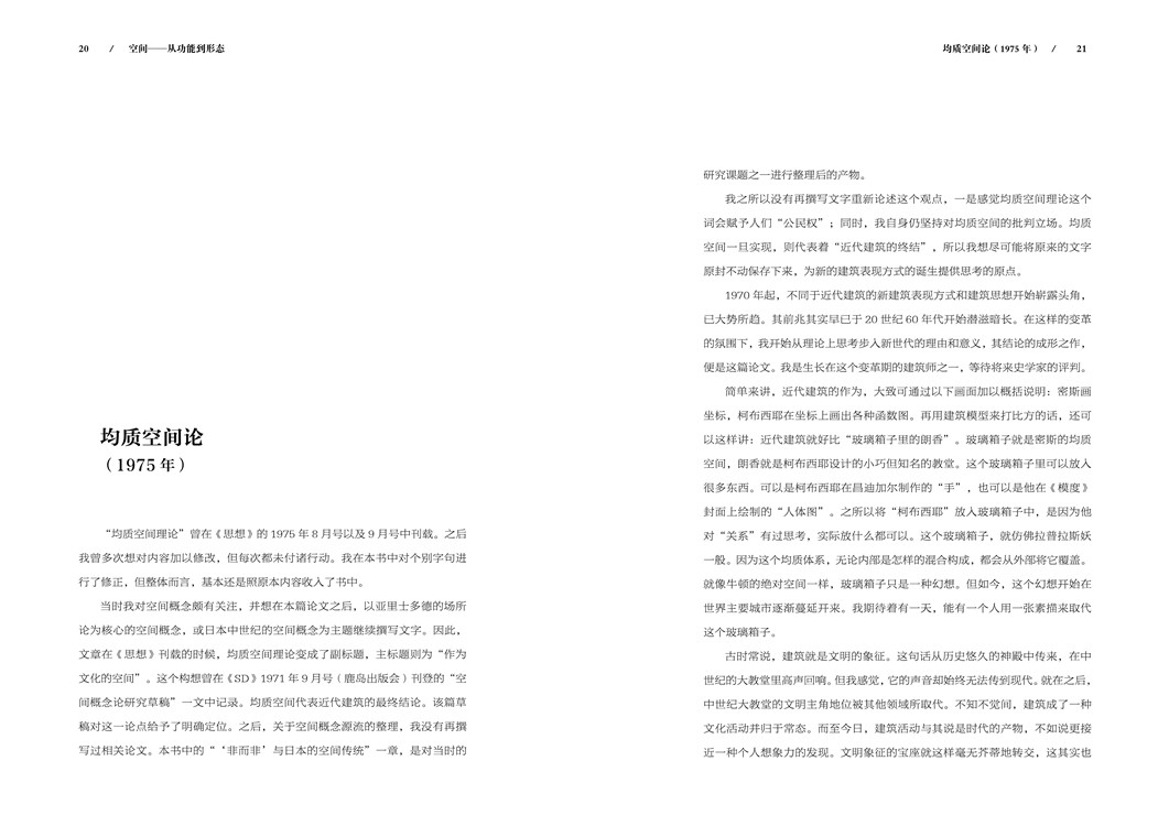 “均质空间理论”一章,像是深处谷底的一种抗议,他从在20 世纪70 年代至80 年代反复论述书写过的关于“万物皆为整体”,还有定家的诗歌、“非而非”等文章中,选择了一些相对概括的内容,融汇到本章。