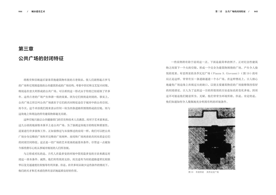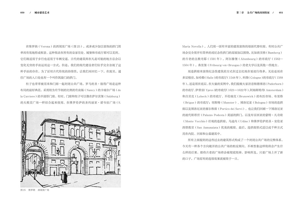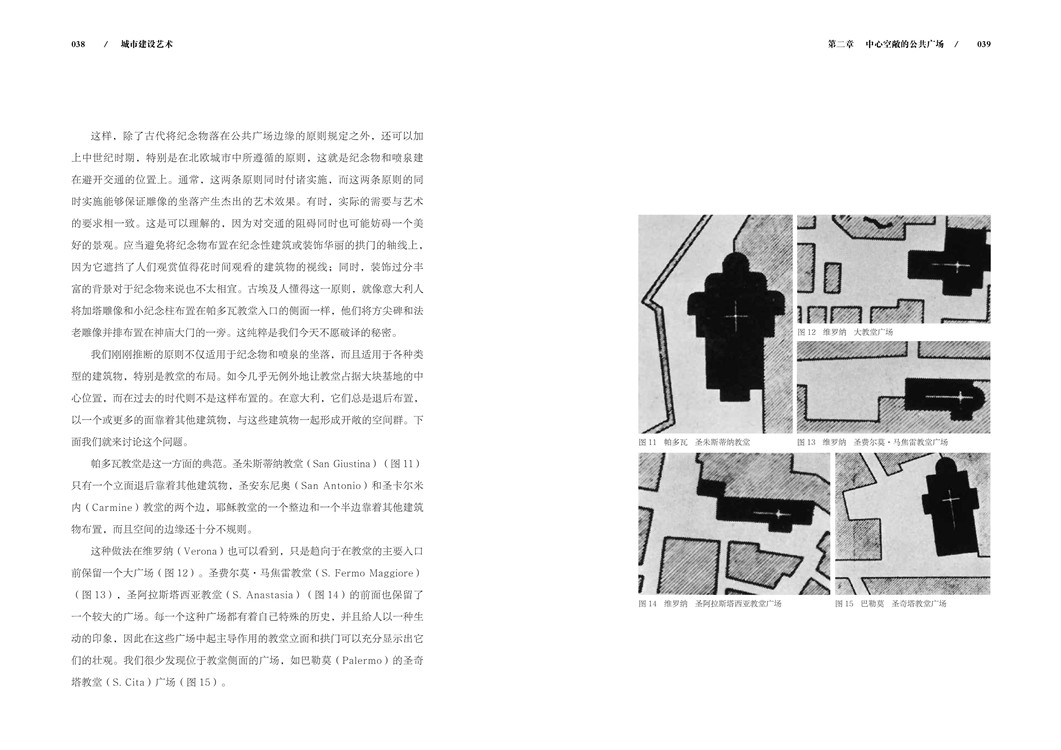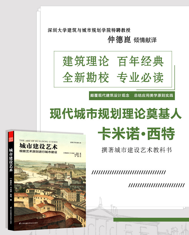《城市建设艺术》1889年首次出版,西特考察了大量中世纪的欧洲城市与街道,通过平面图和透视图的相互参照,分析真正被大众喜爱的城市空间形成的原因──并不一定是宏伟的宫殿和大尺度的广场,而是错落有致、互相呼应、如画的市内风景。强调自由灵活的设计,建筑之间的相互协调,以及广场和街道组成围和而不是流动的空间,总结出适合城市建设的艺术原则。