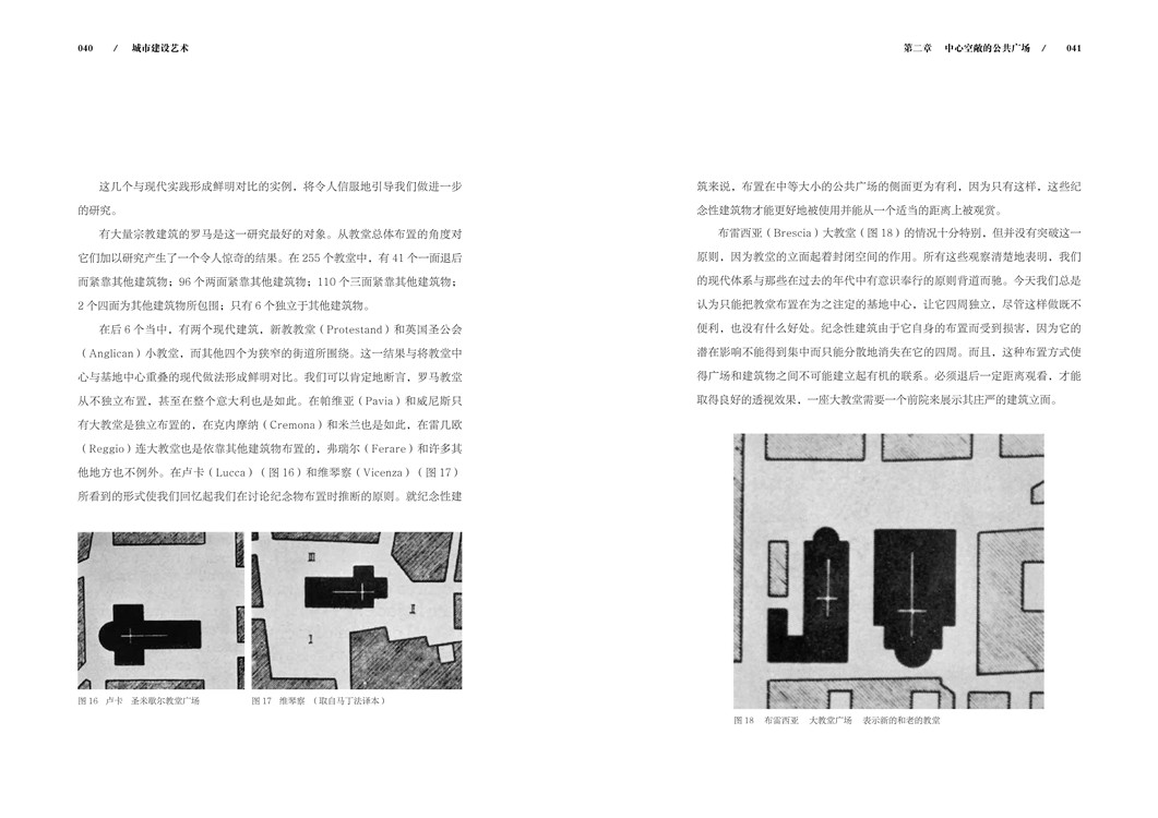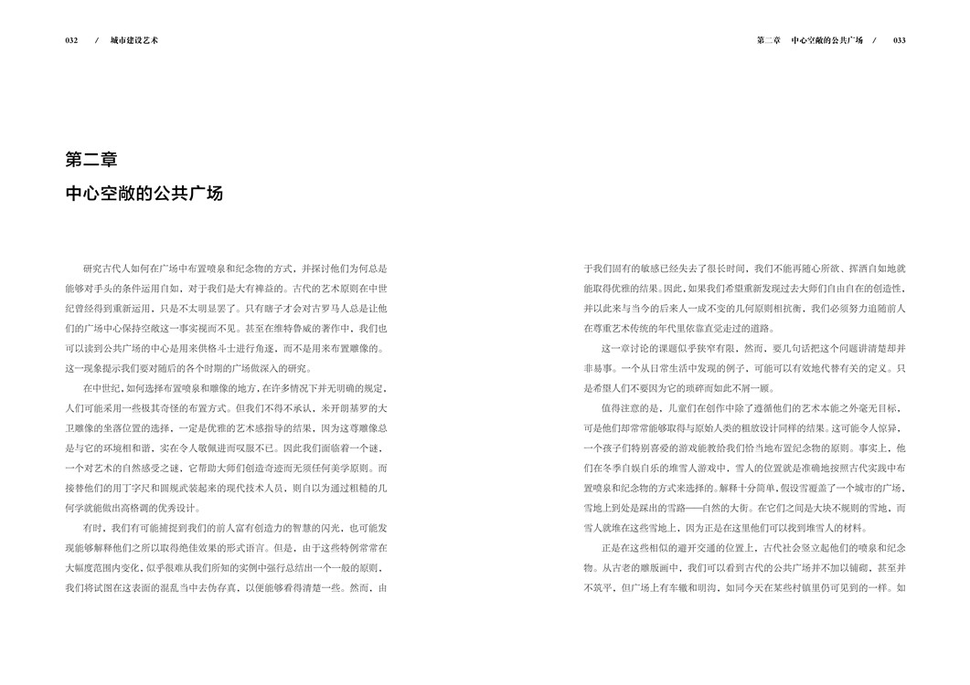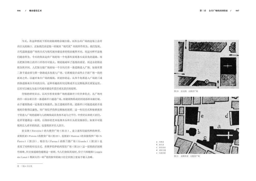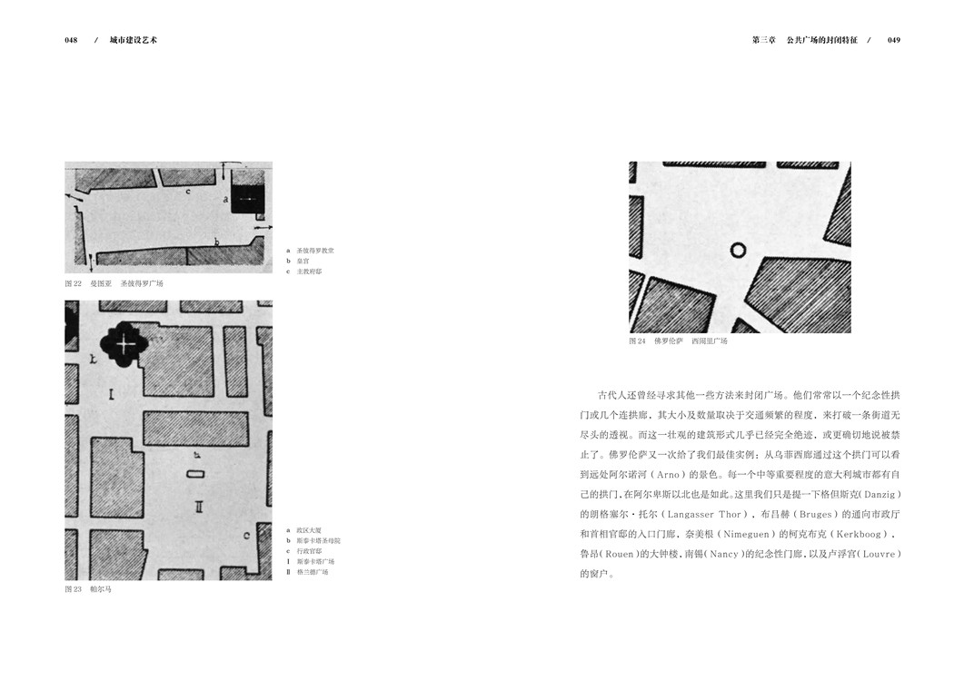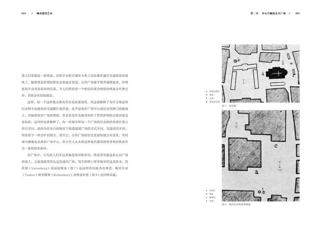 《城市建设艺术》1889年首次出版,西特考察了大量中世纪的欧洲城市与街道,通过平面图和透视图的相互参照,分析真正被大众喜爱的城市空间形成的原因──并不一定是宏伟的宫殿和大尺度的广场,而是错落有致、互相呼应、如画的市内风景。强调自由灵活的设计,建筑之间的相互协调,以及广场和街道组成围和而不是流动的空间,总结出适合城市建设的艺术原则。