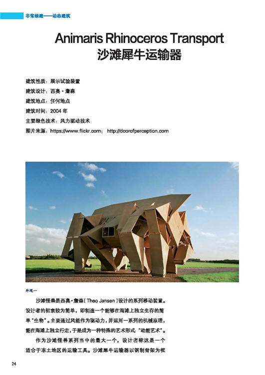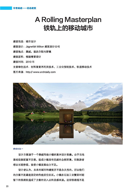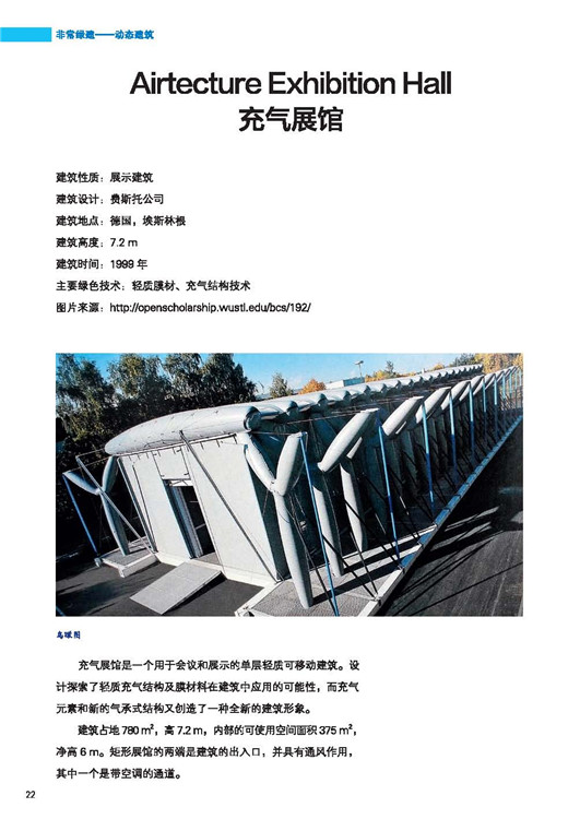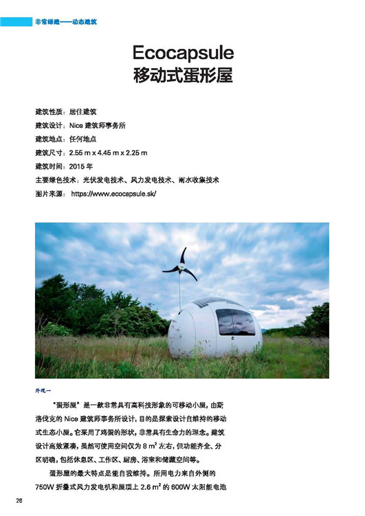 本书是“非常绿建”系列图书的第一本,“非常绿建”系列图书是对绿色建筑进行归纳细分、并搜集全球范围内优秀的绿色建筑项类代表进行整理出版的系列图书,本书对绿色建筑的一种类向——动态建筑的概念进行归纳并阐释,并搜集整理了全球范围内的四十三个动态建筑的代表案例进行展示。