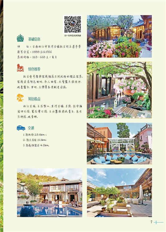 精心甄选35家民宿案例,遍布大江南北,风格迥异,各具特色。每个案例都有介绍民宿老板的个人经历、感受,谈及心中最美的情怀。每个案例中都有路线、周边景点推荐,民宿详细的介绍及价格说明。还有二维码推荐,感兴趣一扫即可了解、预定。