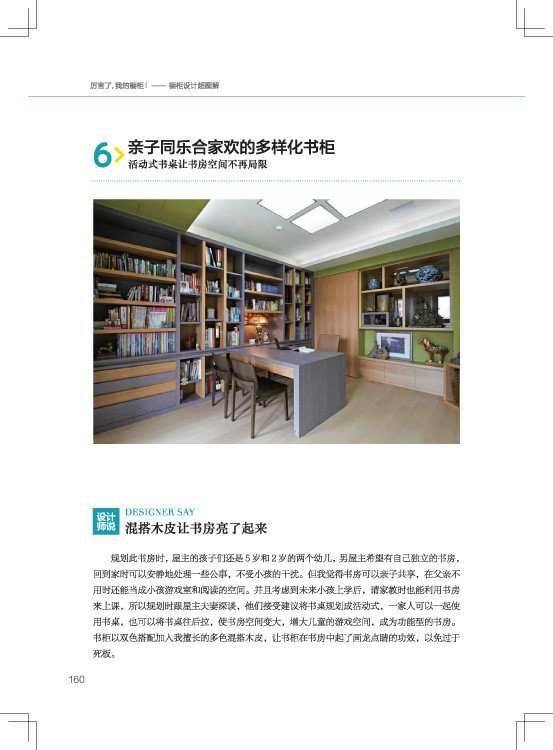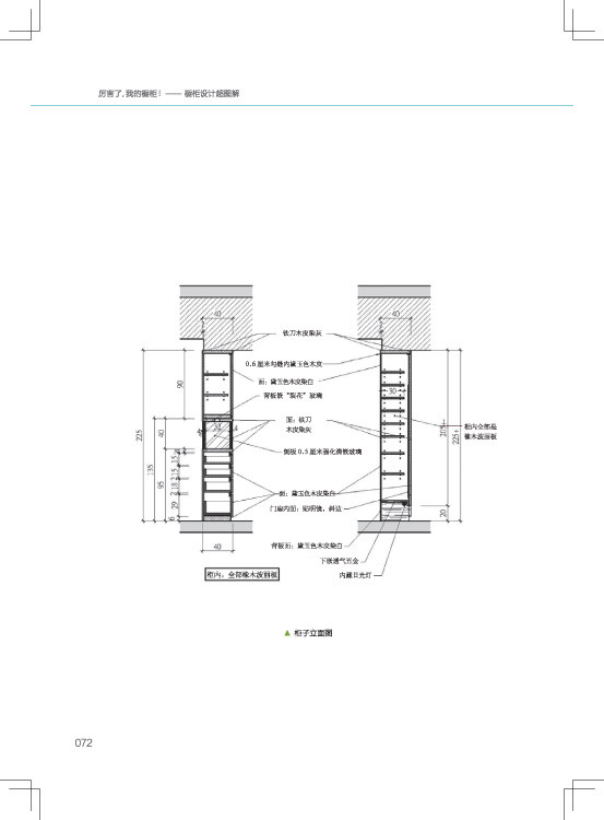 当你看到美丽的柜子,你是否有思考过它是如何施工并制作出来的?柜子、框架和门扇为什么要这样搭配?入柱和盖柱又有什么不同?许多细节将在这书中以剖、立面施工图的形式完整呈现,同样的柜体因不同的木皮搭配及空间色彩不同就会产生不同的风格。书中也收录过去许多的经典设计案例,每个柜子的外观都是具有特色的,内部功能收纳也都是合乎空间需求的。