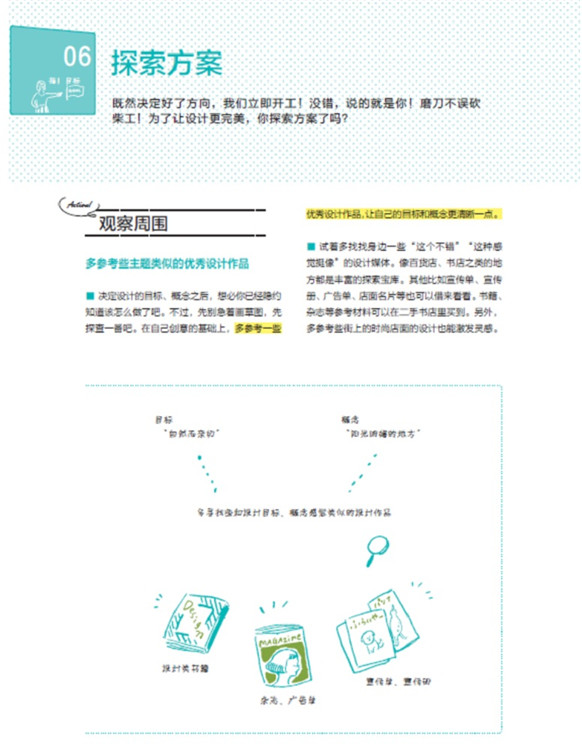 本书不是像教科书那样认真而死板地教,文字和实例都具有趣味性,让设计的表现手法在自由之间穿梭。