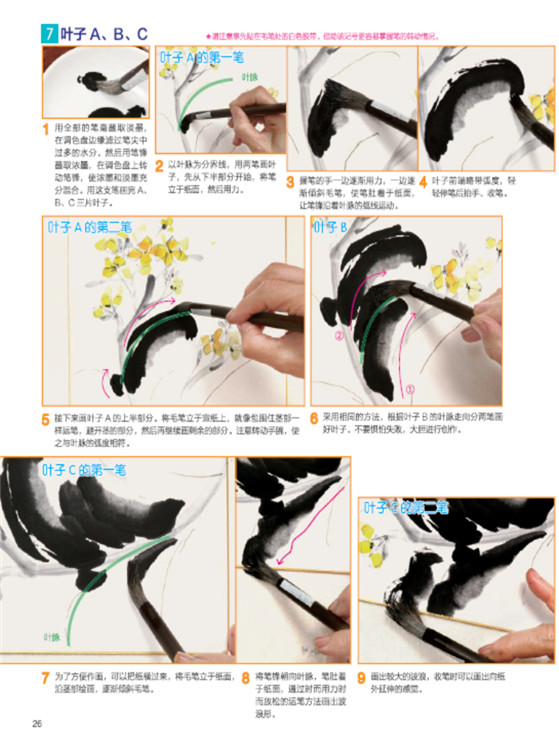在本书中,介绍了一种不勾画轮廓,直接用墨调和颜料进行绘画的创作方法。在这种画法中,尤其注重运笔。灵活运用不同的笔势,充分进行大胆创作。用笔身着浅色,笔尖处着深色或直接着墨,使一支笔之中包含浓度、彩度各不相同的多种层次。这样下笔时,就会产生浓淡渐进和混色等多种效果,描绘出更具感染力的线条。此外,根据毛笔的含水量以及下笔速度、力度的不同,所生的晕染、飞白等效果也会令人过目不忘。