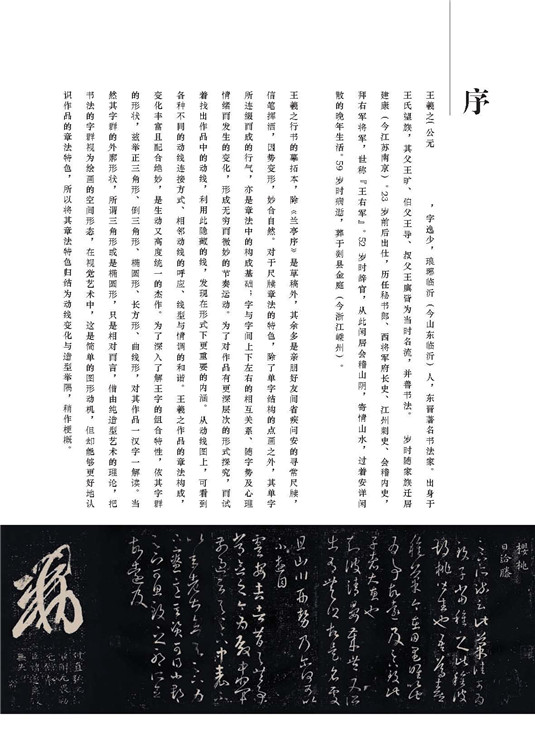 王羲之行书的摹拓本,除《兰亭序》是草稿外,其余多是亲朋好友间省疾问安的寻常尺牍,信笔挥洒,因势变形,妙合自然。对于尺牍章法的特色,除了单字结构的点画之外,其单字所连缀而成的行气,亦是章法中的构成基础;字与字间上下左右的相互关系、随字势及心理情绪而发生的变化,形成无穷而微妙的节奏运动。为了对作品有更深层次的形式探究,而试着找出作品中的动线,利用此隐藏的线,发现在形式下更重要的内涵。 从动线图上,可看到各种不同的动线连接方式、相邻动线的呼应、线型与情调的和谐。王羲之作品的章法构成,变化丰富且配合绝妙,是生动又高度统一的杰作。为了深入了解王字的组合特性,依其字群的形状,兹举正三角形、倒三角形、椭圆形、长方形、曲线形,对其作品一汉字一解读。当然其字群的外廓形状,所谓三角形或是椭圆形,只是相对而言,借由纯造型艺术的理论,把书法的字群视为绘画的空间形态,在视觉艺术中,这是简单的图形动机,但却能够更好地认识作品的章法特色,所以将其章法特色归结为动线变化与造型举隅,稍作梗概。