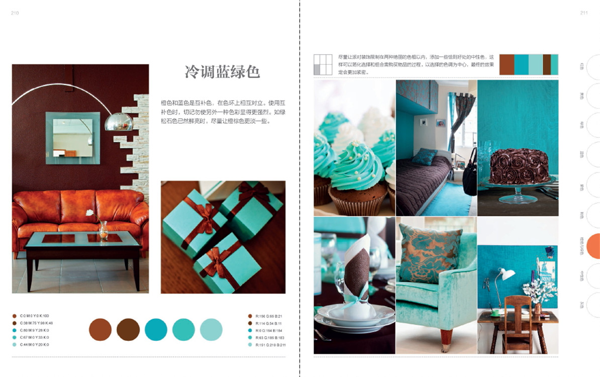 本书是美国旧金山知名室内设计师珍妮弗·奥特的新作,有针对性地选取了9大色系共125个配色方案,不仅介绍了实用的色彩搭配范围和法则,而且阐述了不同的色彩搭配所代表的文化内涵和所营造的格调氛围等,配色方案涵盖范围相当广泛,包括家居装饰、婚礼庆典、形象配饰、蛋糕装饰等方面。书中文字生动且贴切,选用“天空中的太阳”“彩虹之上”“夏季向日葵”“暗色迷迭香”“水漾清波”等富有诗意的词语为色彩添上点睛之笔。精美的图片结合CMYK、RGB色值及配色比例,使配色方案丰富且实用,将知识性、实用性、收藏性集于一身,为广大色彩爱好者及室内设计师、平面设计师带来丰富的灵感启发,具有很高的借鉴及参考价值。