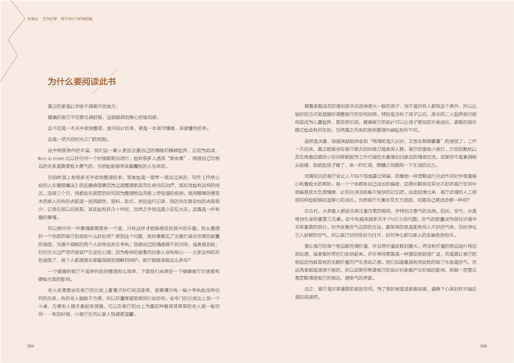 真正的家是让你舍不得离开的地方。健康的客厅不仅要住的舒服,还能够得到身心的愉悦感。这不仅是一本关于收纳整理、室内设计的书,更是一本调节情绪、深度懂你的书。由于物质条件的丰富,我们这一辈人更加注重自己的情绪和精神世界。正因为如此,“少即是多”比以往任何一个时候都更加流行,也有很多人选择“断舍离”,梳理自己与物品的关系是需要极大勇气的,当然也能够带来颠覆性的人生体验。客厅是非常重要的家居空间,这本书是解决你客厅问题的一把钥匙。
