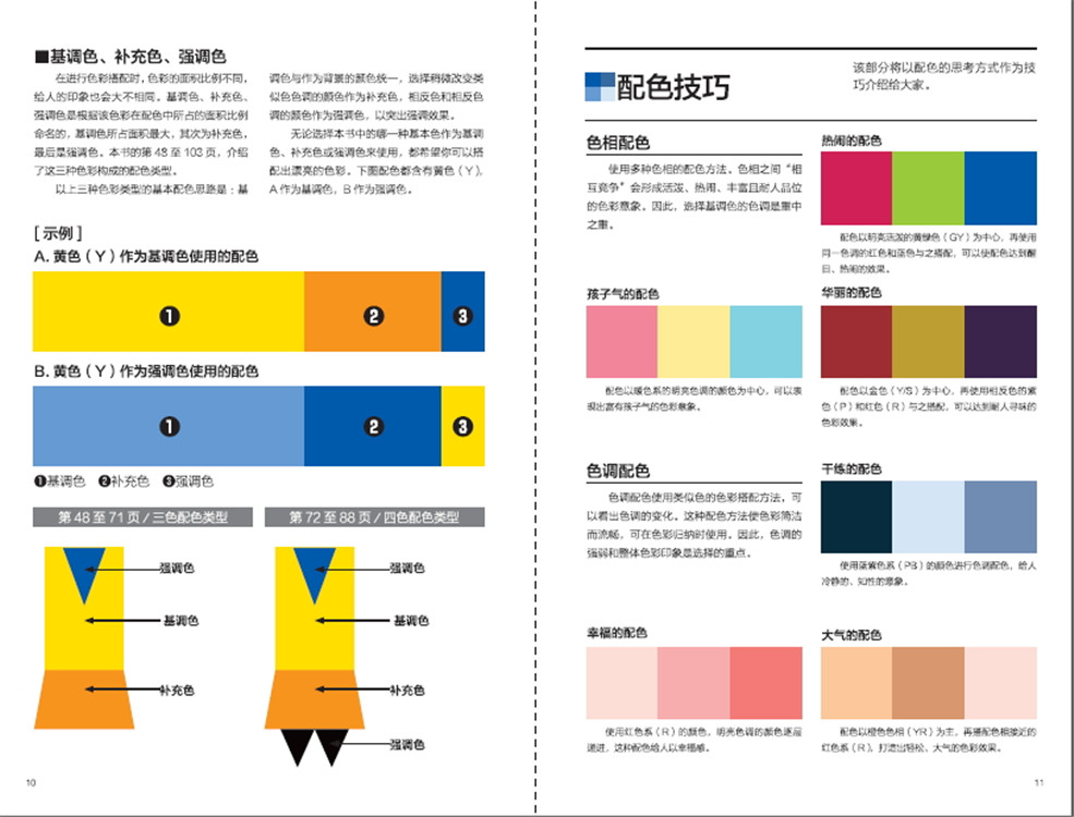 日本色彩设计研究所的最新力作,130种基本色,12色相(新增金色、银色),配色组合丰富:双色、三色、四色及五色的多样配色方案,尽在配色手册!以小见大,由薄入深,一本掌中书,唤起一片色彩天地,点亮你的灵感之光!