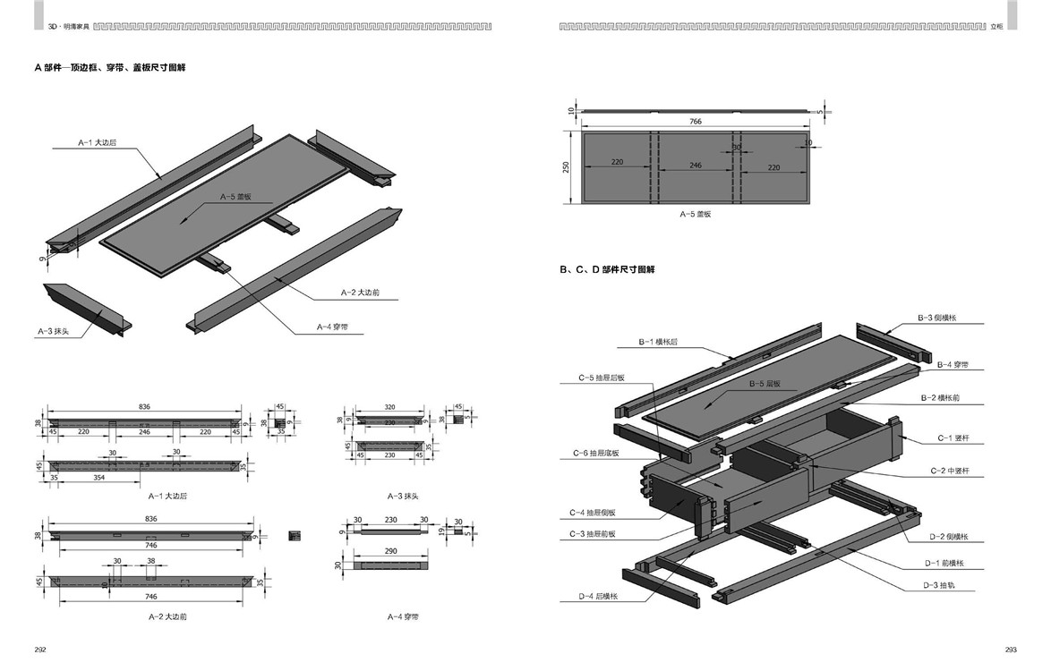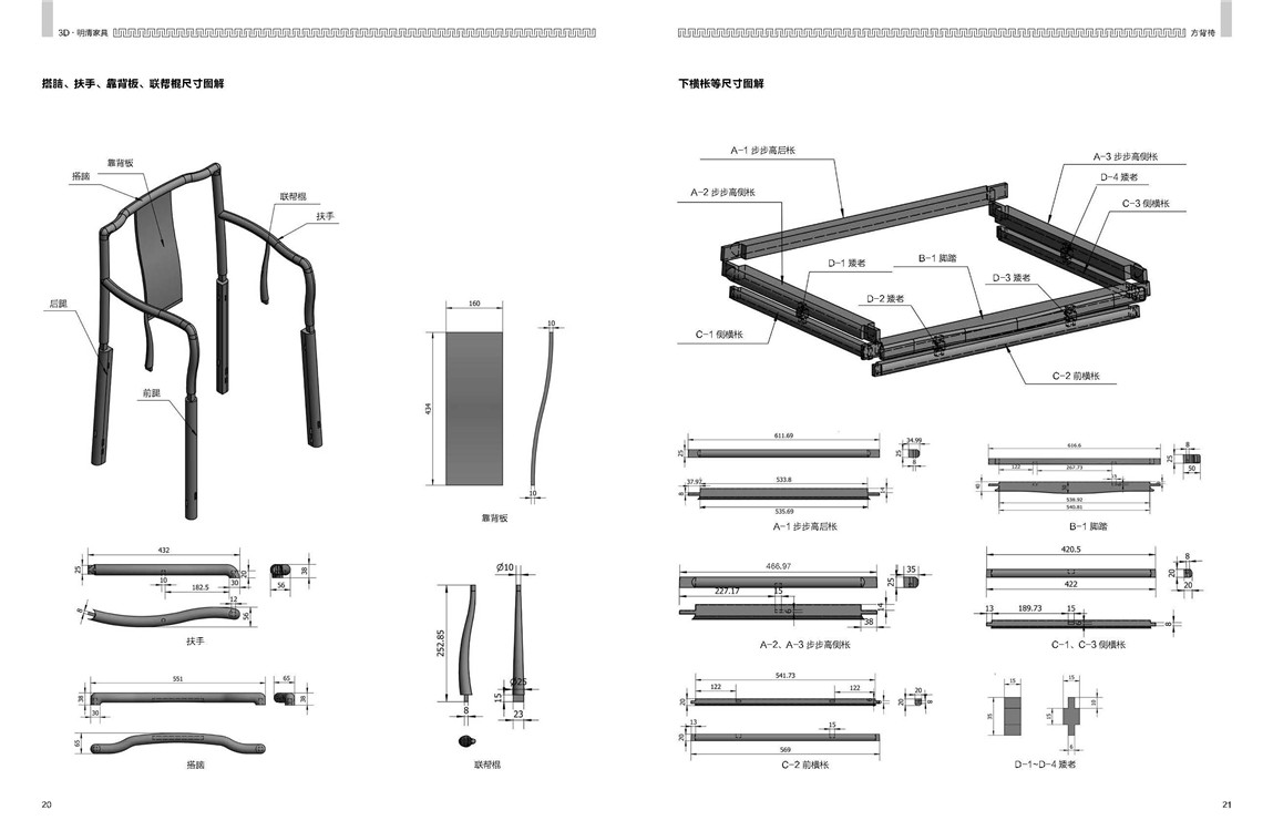 本书基于中国古代明清家具的木作方法,对明清家具构件进行3D建模,并标注尺寸和比例,用现代科技还原古典木作技术,对各式明清家具进行构架拆分以及数据还原,从而使读者对明清家具的结构和实用性有了进一步的了解和掌握。并且本书结合当下最新的视频扫码技术,使用qq扫一扫,扫描书内的家具图片,可以观看家具拼装结构视频,使读者可以进一步了解古典家具榫卯结构,对古典家具的制作和研究有着重要的辅助作用。