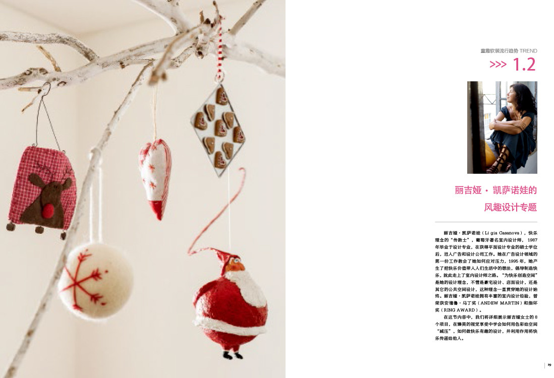 此书除了详解案例,还有此类作品的国际大奖获得作品引领的趋势,亦有相关的软装色彩、秒摆、花艺教程。走进此书会发现,只要用心,身边不少活泼可爱,或憨态可掬的东西都可以变成趣味十足的软装元素。