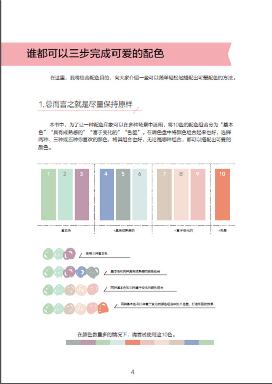 本书分为“少女感”“成熟”“流行”“随性”“健康”“植物”“现代”“古典”“复古”“和风”“北欧风格”等主题,通过具体实例对每个主题进行解说,详细讲解了如何简单轻松地搭配出清新可爱的配色。本书中通过色卡和关键词、配色实例两个部分对每一种配色印象进行解说,除了实例之外,还提供了两种颜色到五种颜色的各种配色样本。通过阅读本书,可以帮助你正确地使用配色,使你的配色设计将你的设计目的充分展现给你的客户。