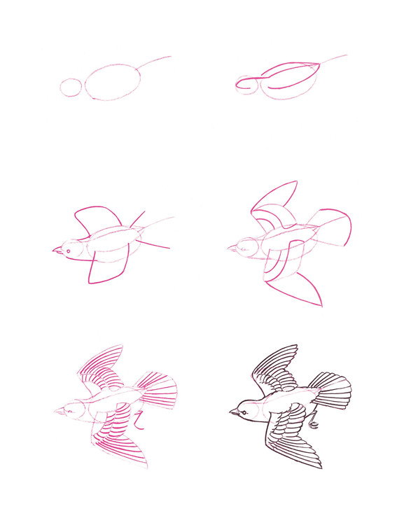 在勾画每一步时,都要注意每两根线条之间的空隙和线条本身。在每一步后,可以用橡皮擦淡之前的线条。当你完成时,可以使用笔刷或钢笔加深最终画作的线条,当墨水干燥后,用橡皮擦掉铅笔线条,不会影响墨水线条。
