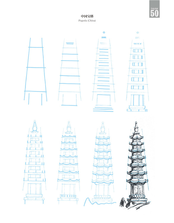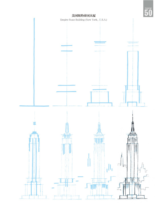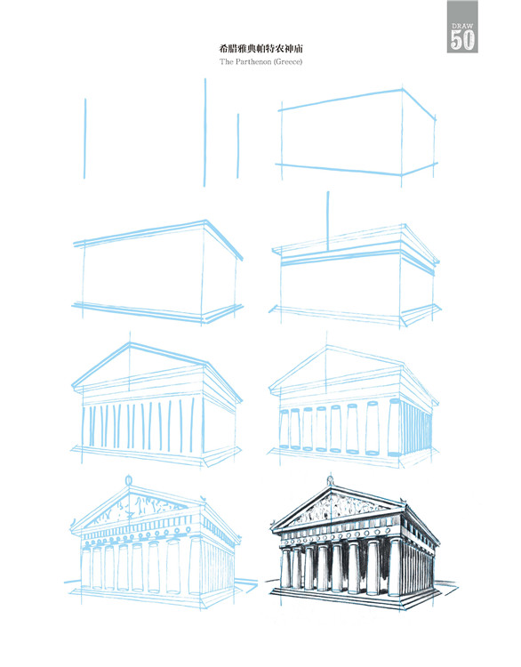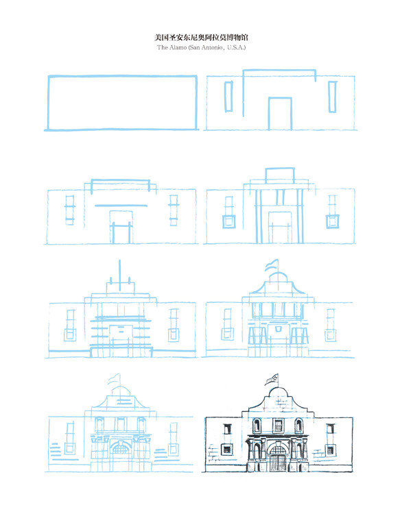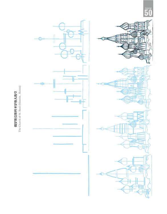 在这本书中,有些建筑极其珍贵少有,它更像一个笔尖上的世界建筑博物馆。比如美国纽约帝国大厦、意大利比萨斜塔、英国伦敦大本钟、印度泰姬陵,当然也有诸如瑞士小木屋、中国宝塔,甚至还有俄罗斯莫斯科圣罗勒大教堂、法国兰斯大教堂、希腊雅典帕特农神庙、墨西哥玛雅金字塔……
