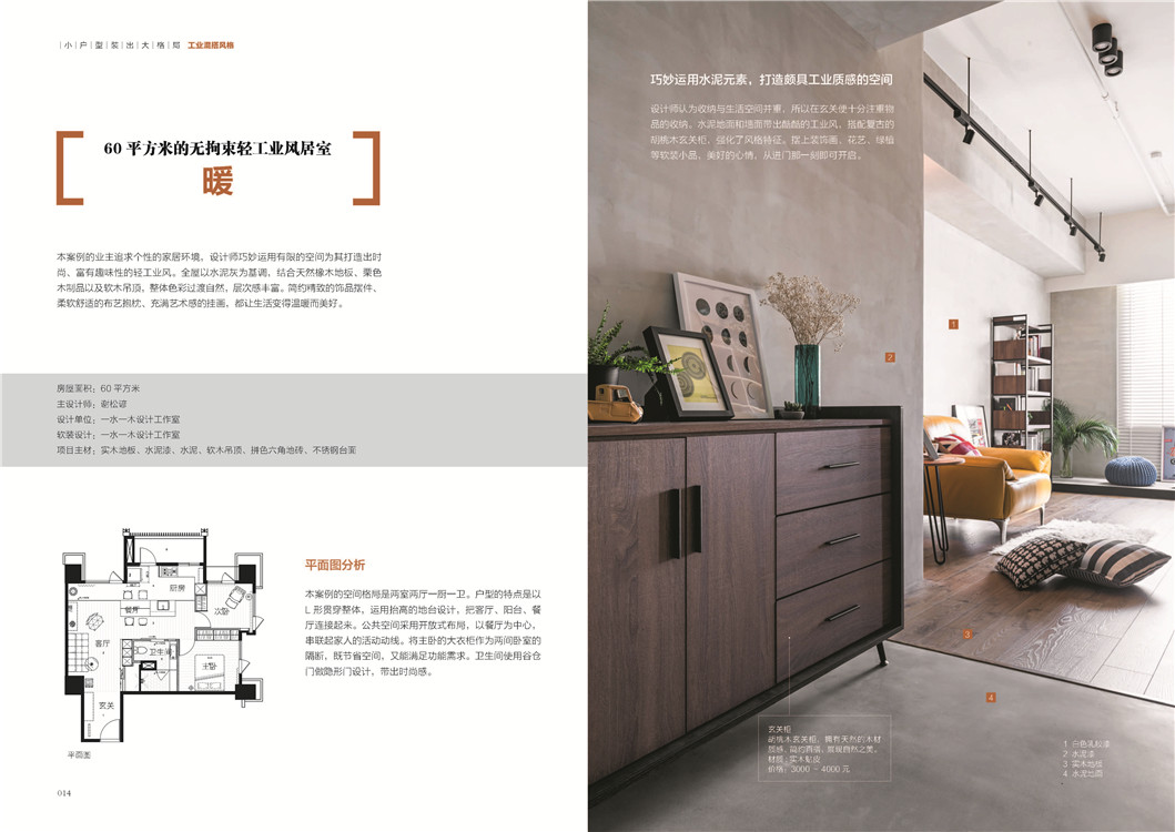 本书是一本实用型小户型家装参考书,精选国内一线设计工作室的21个优秀的工业混搭风格的实景案例,每套案例一个主题,并配有户型图解析和设计理念介绍。编者从室内设计的专业角度分析了小户型的装修特点,并从软装、色彩、材料、住宅的功能分区、收纳储物等角度全面讲解了在小户型装修过程是怎样合理规划空间布局和从视觉、功能使用上增大空间面积。全书案例详细说明了所用的主要装修材料和设计要点,全方位讲解工业混搭风格的装修理念,并对案例中出现的工业风单品做以简单介绍,实用性非常强。