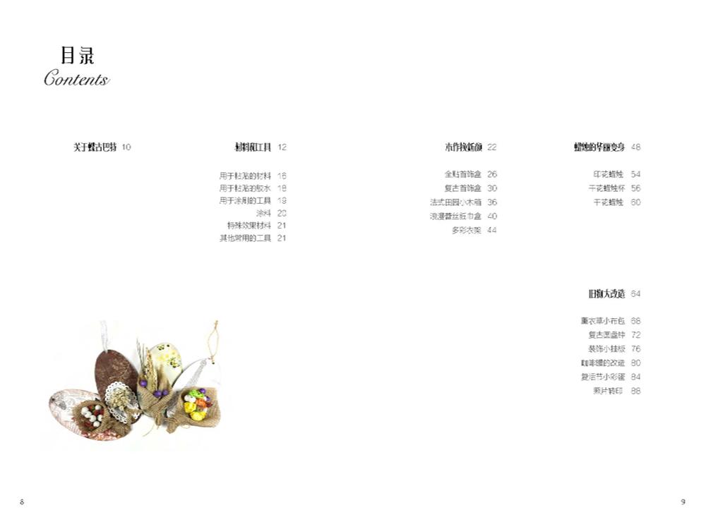 本书是一本蝶古巴特的基础入门书,一本书解读蝶古巴特的历史、原料工具,并详细拆解十几种蝶古巴特的作品的制作步骤。这些流行的蜡烛、香包、日用杂物甚至丢弃物,经过“蝶古巴特”后会以全新的面貌与艺术性回归我们的生活。“浪漫创作”“ 变废为宝”“ 旧物改造”是本书的关键词。