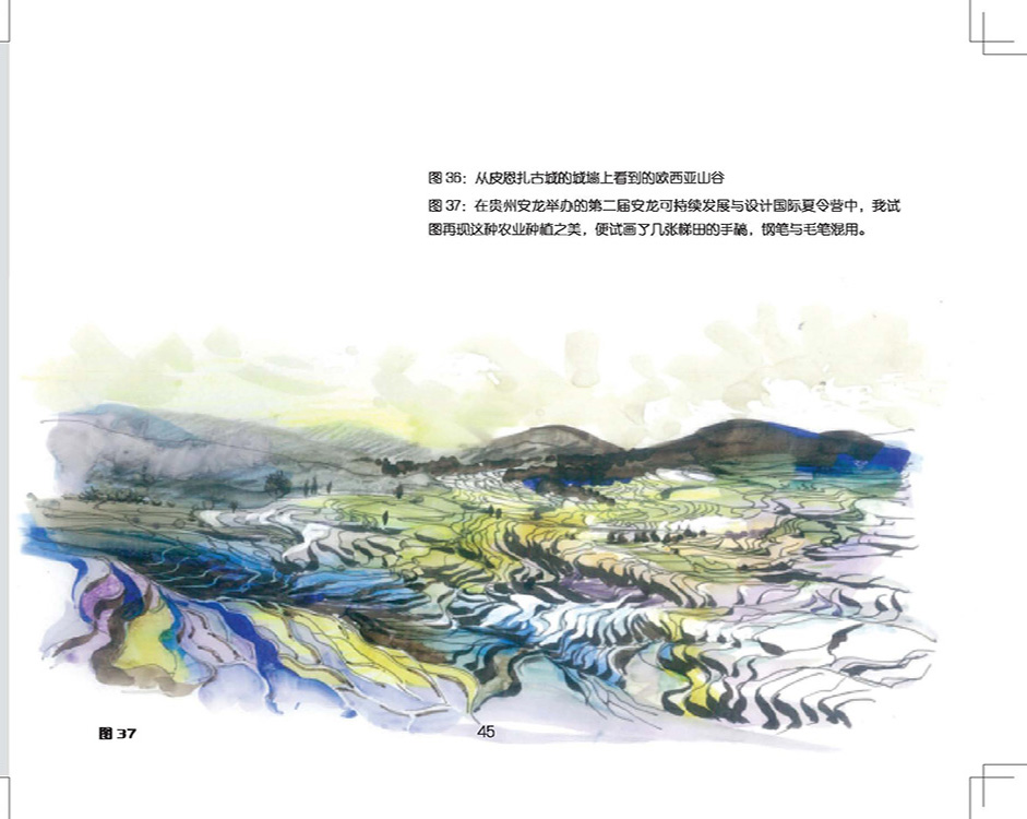这是一本作者的景观手绘作品集,整理了作者在旅行中的所绘的各种植物、风景、建筑。乡村。田野。同时作品涵盖作者旅途中的大型空间布局分析,中外园林植物速写,各地方的园林景观风貌速写。大到世界知名广场空间鸟瞰图,小到雕塑,甚至建筑结构的木雕装饰图描绘。此外,还包含一些江南古镇风景、建筑与民居院落,贵州梯田、村落与农家院落的手绘图。作者回归设计,对其进行推敲、构思,并落实到亲身参与的安龙村落景观规划设计项目中。