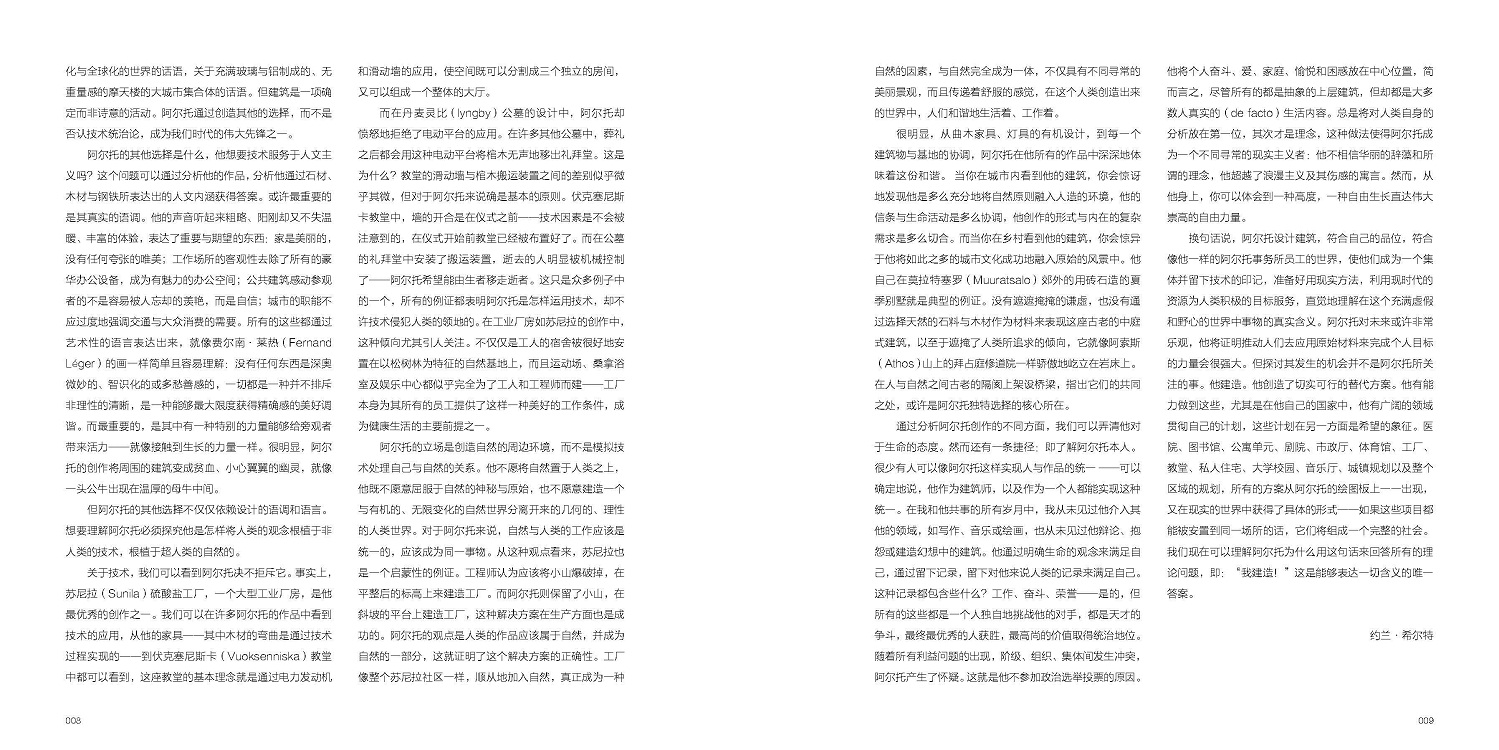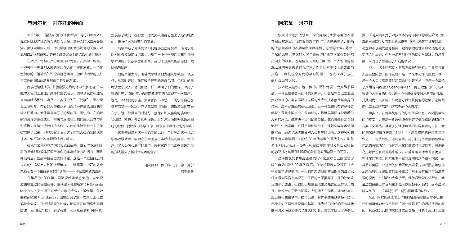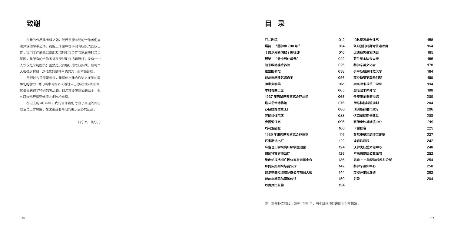 本卷外文原版出版于1963年,是这位大师作品集的第1卷,收录从1922—1962年的建筑设计与规划案例,从1929年建成位于图尔库的芬兰剧院,到1962年的新赫尔辛基城市中心方案,通过280余张照片,近200张设计图纸和草图,按时间顺序为读者展示。本书并没有将阿尔托的建筑设计归类于某种风格或流派,也没有对他的作品小题大做,只是将他的建筑设计忠实、客观、简要地展示与陈述给读者。