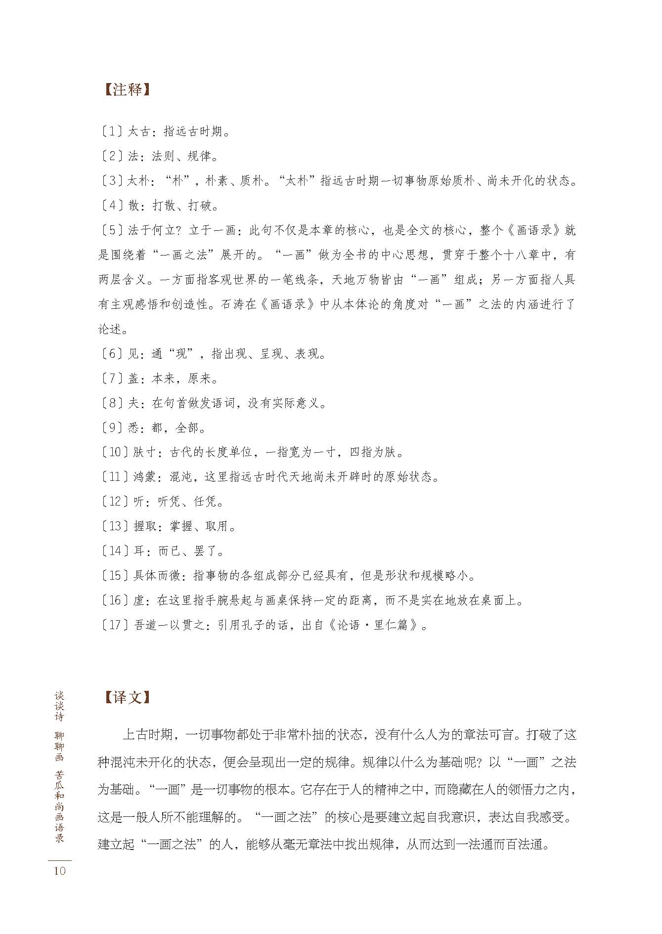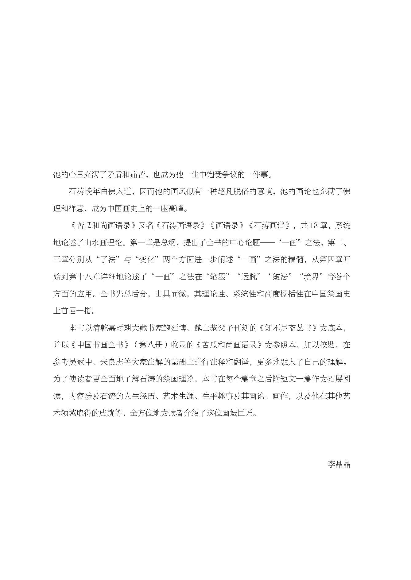 本书以清乾嘉时期大藏书家鲍廷博、鲍士恭父子刊刻的《知不足斋丛书》为底本,并以《中国书画全书》(第八册)收录的《苦瓜和尚画语录》为参照本,加以校勘,在参考吴冠中、朱良志等大家注解的基础上进行注释和翻译。