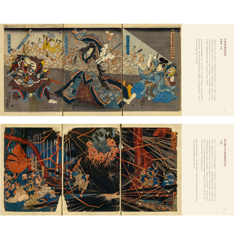百鬼夜行里最为人所知的妖怪“酒吞童子”,大阴阳师安倍晴明的得意弟子“安倍泰成”,平安时代妖术高强的大盗贼袴垂保辅,率十九位大臣出征坛浦海战的源义经……歌川丰国、歌川国芳、月冈芳年等21名日本浮世绘大师取材于神话出云国大社八百万神,宇治川大合战、和田合战等著名战役,历时多年绘制而成。本书严选其中16幅画面,场面气势恢宏,构图及人物表现堪称经典。每幅图配以短小精悍的背景概说和画面描述,使欣赏更具知识性,阅读更具趣味性。