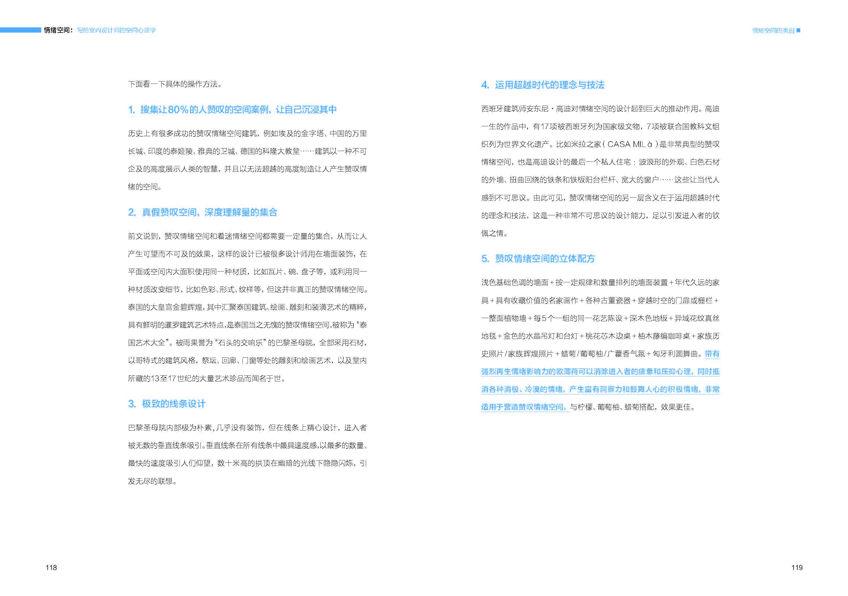 而言,设计师应该具备心理学相关专业的基础素养,以便很好地掌握人的心理,打造积极、良好的疗愈性空间。越来越多的设计师开始关注情绪空间,即条件反射性地规避危险,趋吉避凶,评估那些具有重要意义的“刺激物”,这必然促使情绪空间相关研究的诞生。