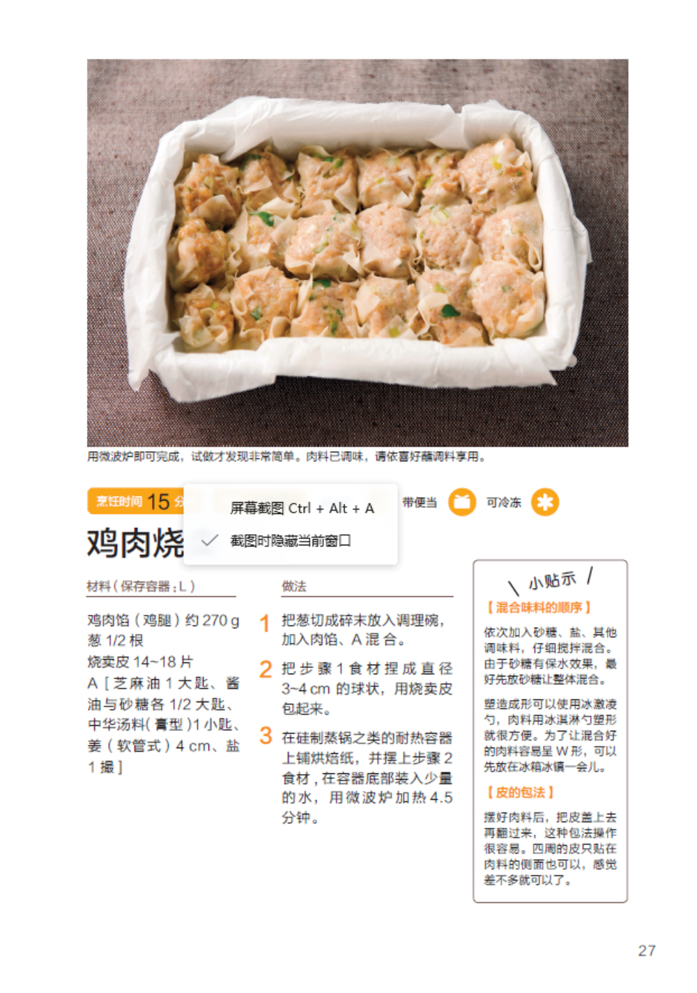 鸡肉烧卖… ………………………………… 27
