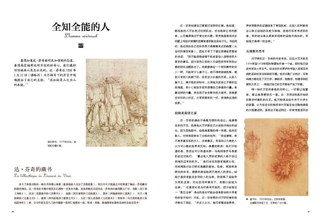 本书着重介绍了达·芬奇富有远见的艺术和发明,展现了达·芬奇在发明和艺术创作过程中充满想象力的一面。本书收录了300多份珍贵插图和手稿,其中包括达·芬奇致卢多维科·斯福尔扎的信、古抄本中的概念图和设计图、天文学图纸和伊莫拉城市平面规划图等。从中可以看出这位大设计师探索宇宙万物运行法则的雄心壮志。书中对达·芬奇的各种手稿进行了展示和剖析,读者可以从中得到灵感、获取知识。