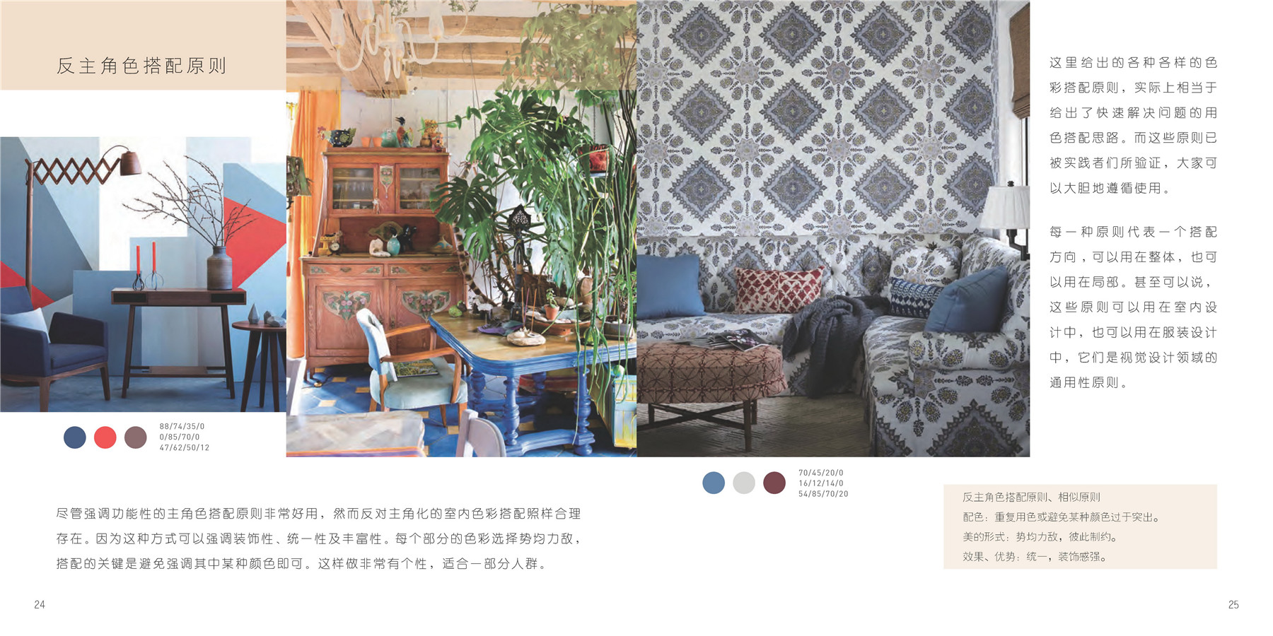 配色是室内设计中的重要一环,要做好配色,我们一方面应该掌握视觉色彩设计的总原则,一方面应该熟知室内色彩的特殊性。本书提供的色相、色调、色彩搭配参考就非常具有室内设计的特点。这几年室内设计用色越来越大胆、多元化,在注重色彩搭配的美感与个性的同时,我们也要注重色彩的功能性。色彩可以潜移默化地影响我们的情绪,还可影响身心健康。
